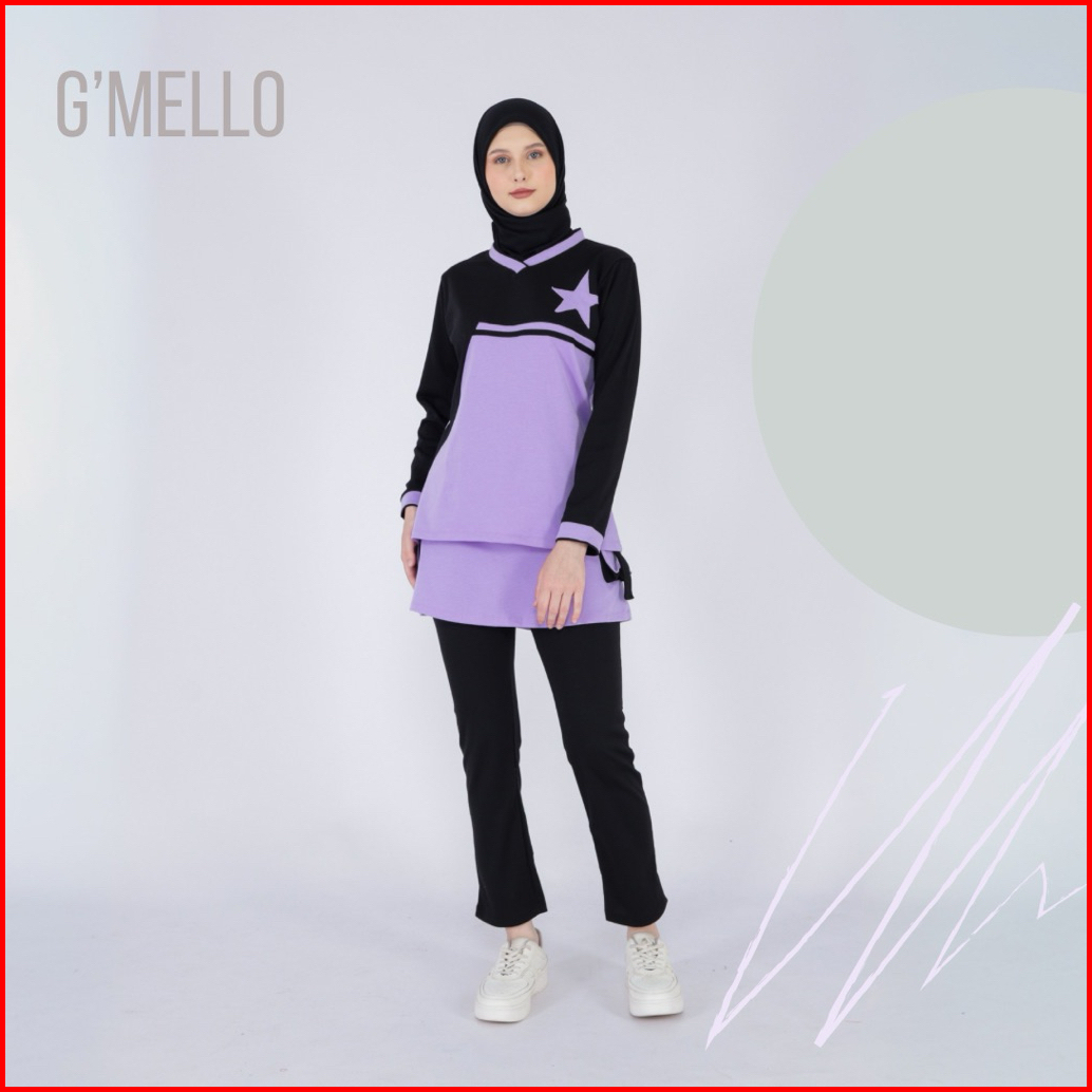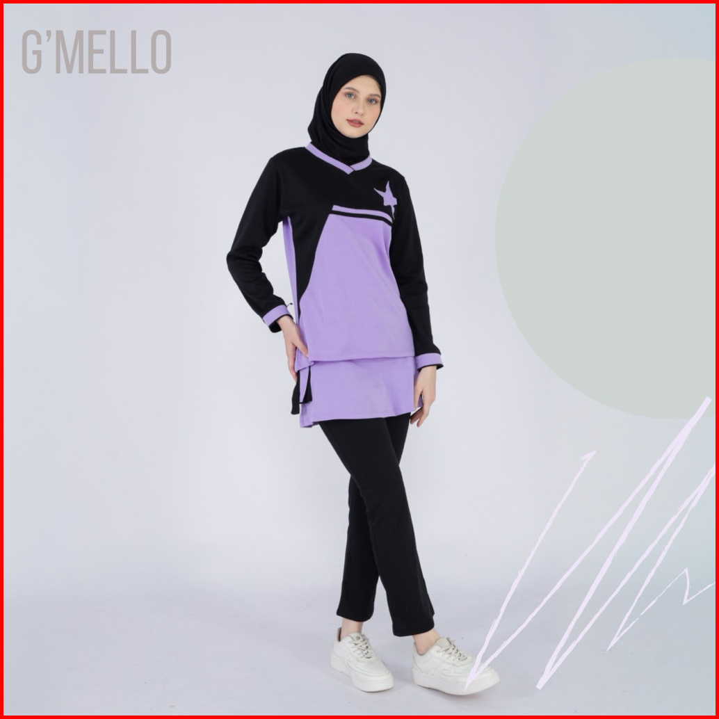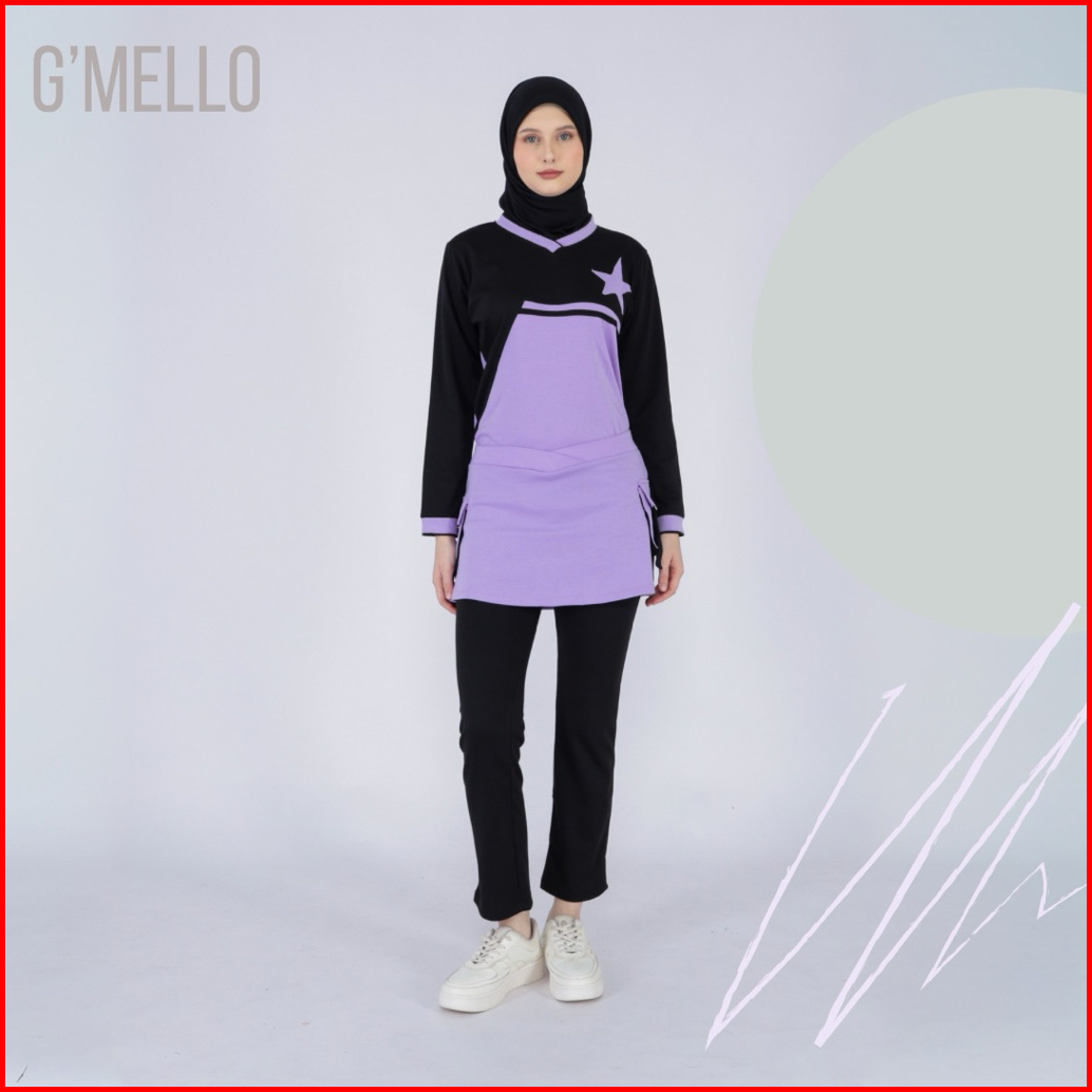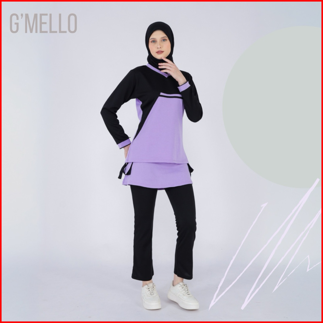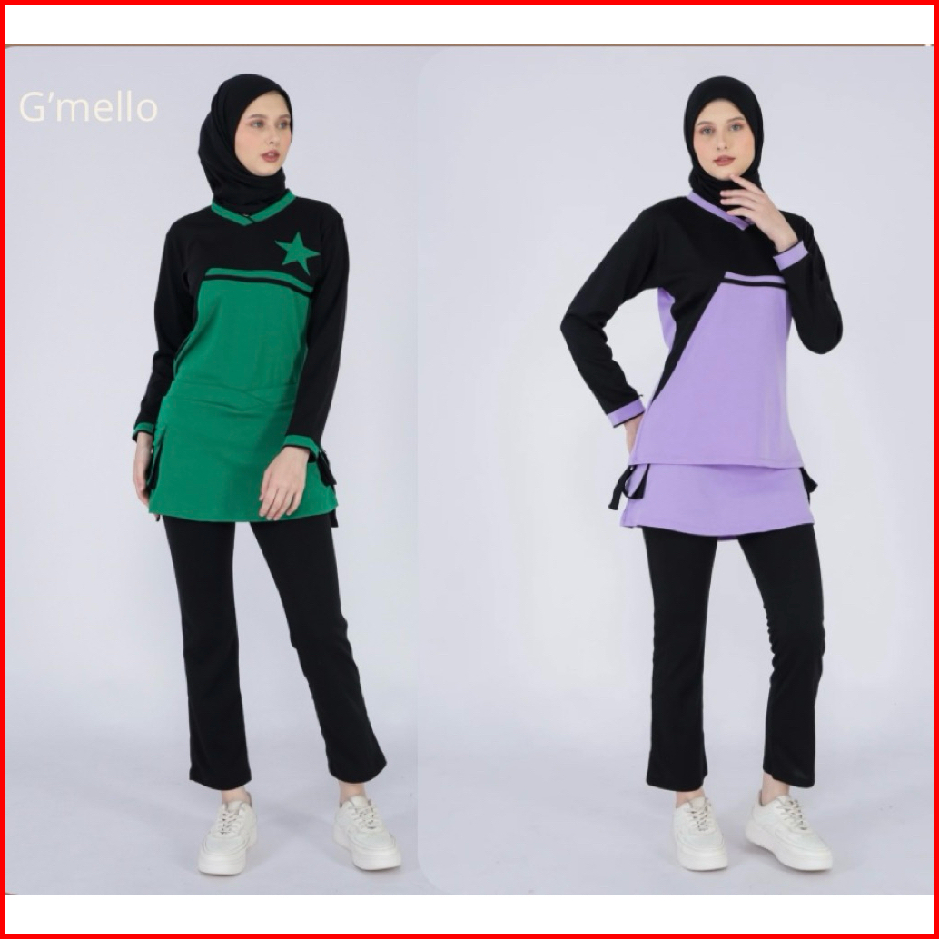 Oneset G Mello Stelan Olah Raga Wanita Bahan Spandeks Premium Set Baju Senam Musliman