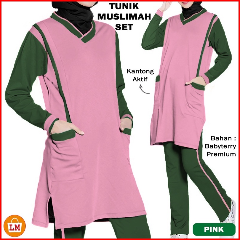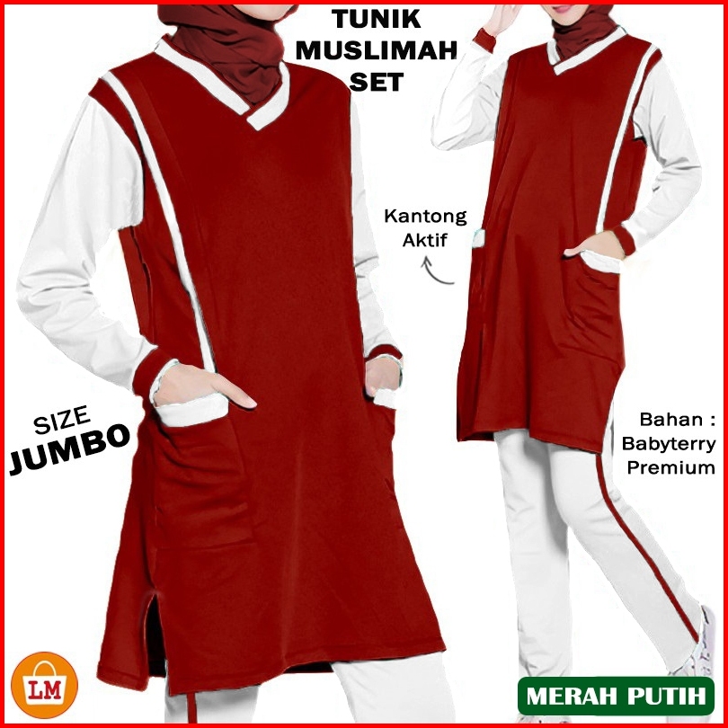 Baju Setelan Wanita Muslim Tunik Muslimah Set Babyterry Pakaian Training Olahraga Big Size Xl-3xl Mantul 17561-17569