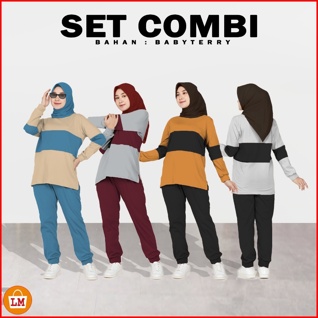 Set Combi Setelan Kaos Celana Olahraga Wanita Muslimah Lengan Panjang Training Babyterry Bahan Adem Size Xl-3xl Mantul 3