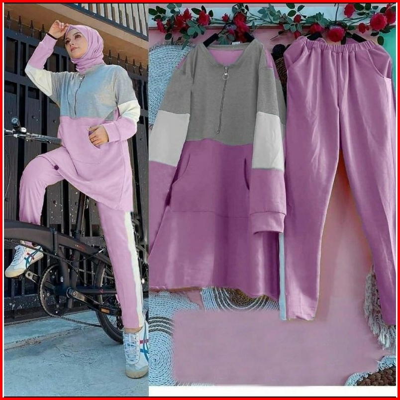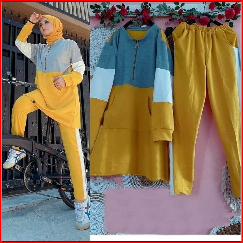 Mixed Set Baju Olahraga Wanita Muslim Muslimah Set Pakaian Sport Jumbo Sepeda Yoga Aerobic Goes Kekiniansetelan Joger Se