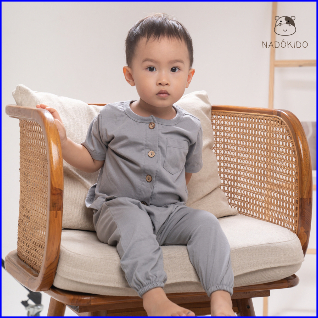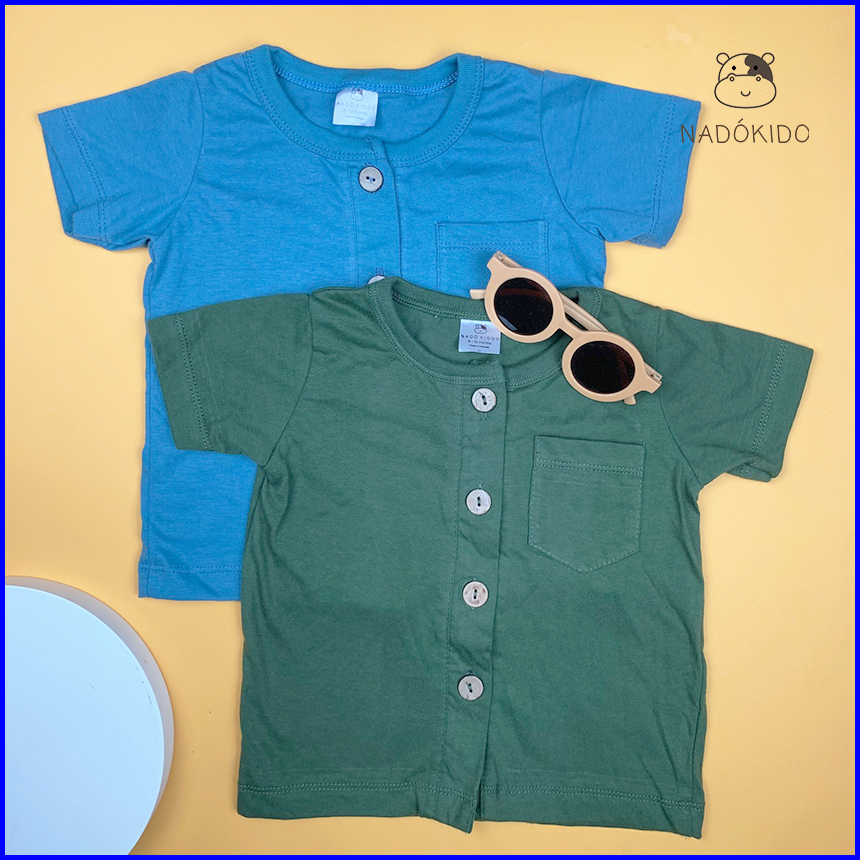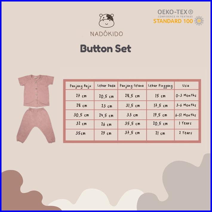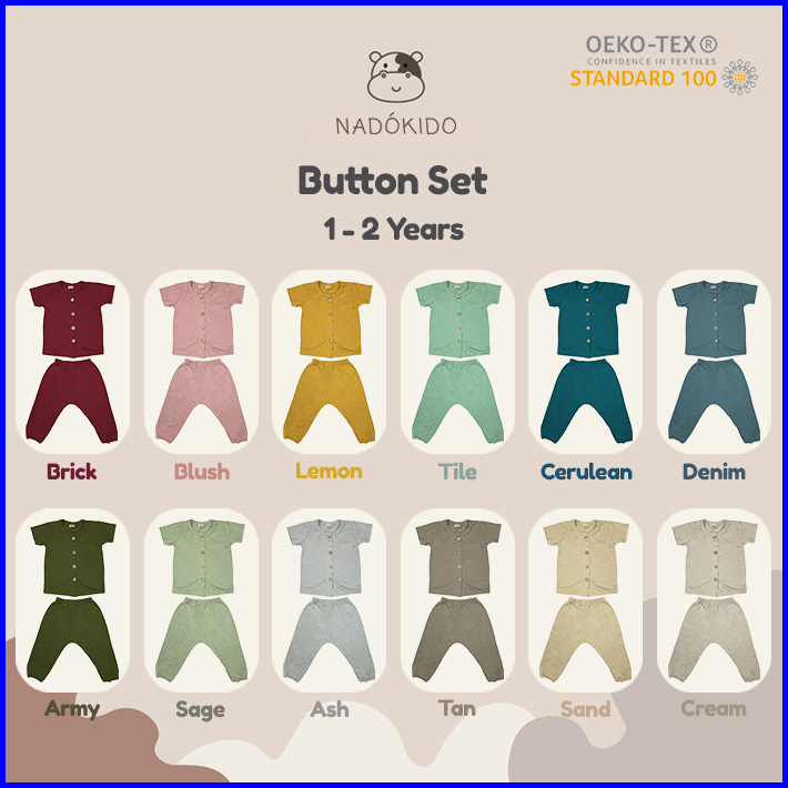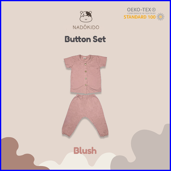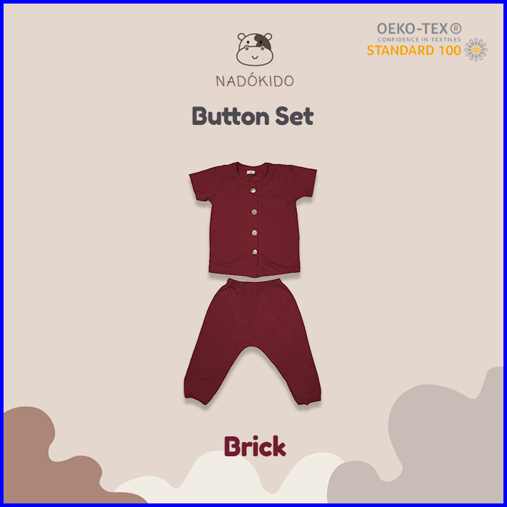 Nadokido Button Set Kaos Piyama Baju Tidur Setelan Anak Cewe Cowo Bayi Polos 1 - 2 Tahun