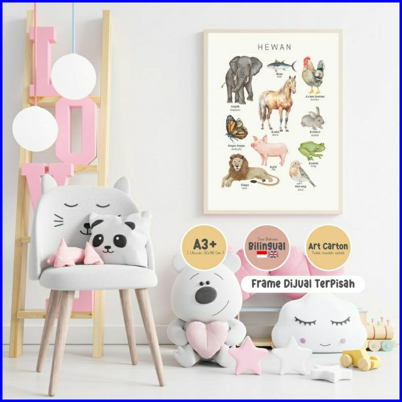 Bebegenic - Seri Polos Poster Edukasi Anak Variasi Hewan Poster Belajar Mainan Anak Poster Edukasi Aesthetic