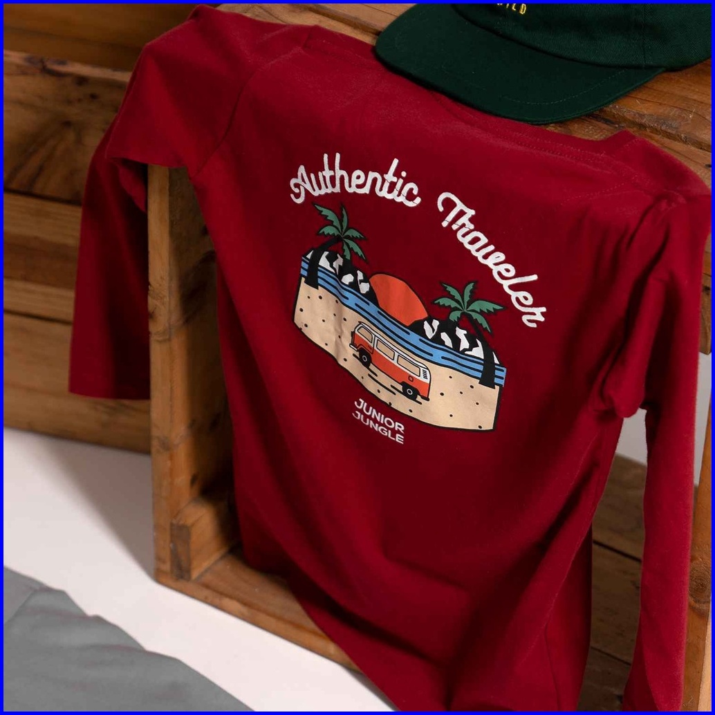 Junior Jungle - Baju Kaos Anak 2- 6 Tahun Great Traveller Series Maroon