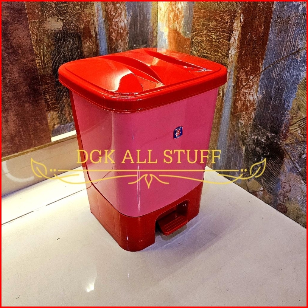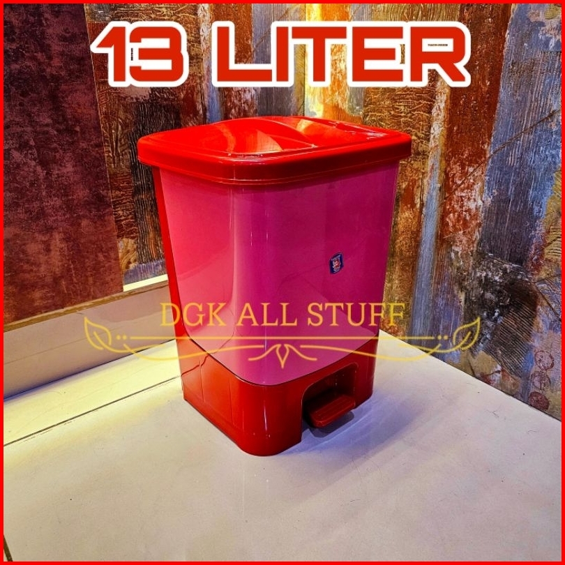 Tong Tempat Keranjang Sampah Pijak Injak Injek Pedal Otomatis Bertutup Tutup Segi Plastik 13 L 13l 13 Liter Putih Cream