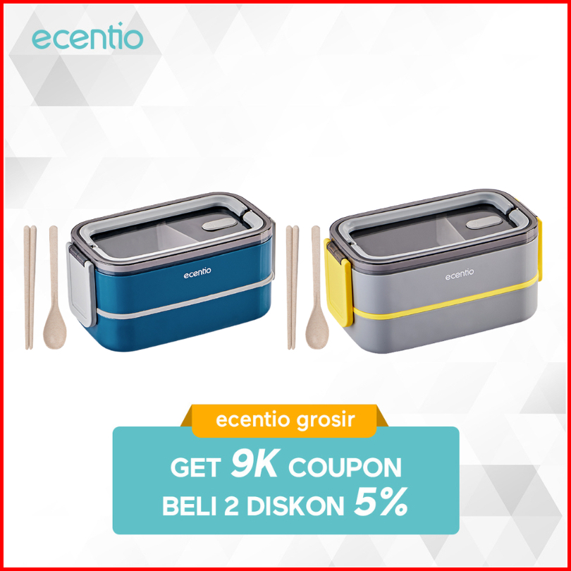 Grosirecentio Kotak Makan Anti Tumpah 2 Susun 1600ml Dark Biru Tempat Makan Anak Sekolah Lunch Box Tepak Bekal Makan 2 S