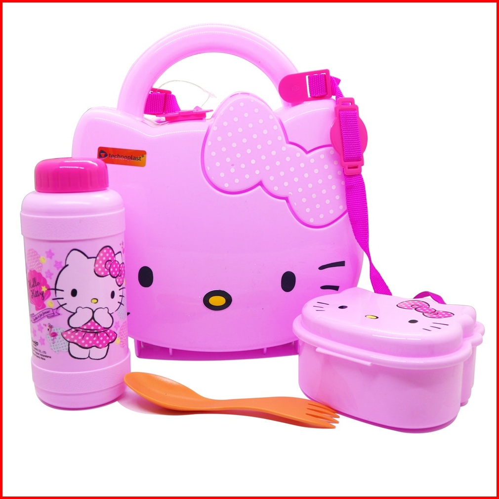 Tempat Bekal Makan Anak Set Hello Kitty Summer Cupid Howdy Cat Series School Box Plus Tali Kp