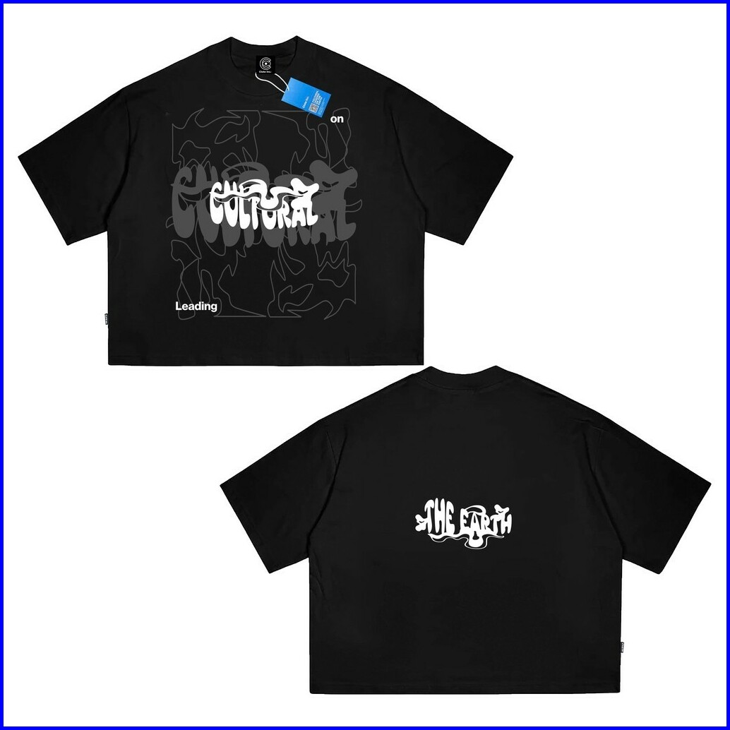 Boxy Crop Fit Oversized Cotton 20s Clote The Earth Black