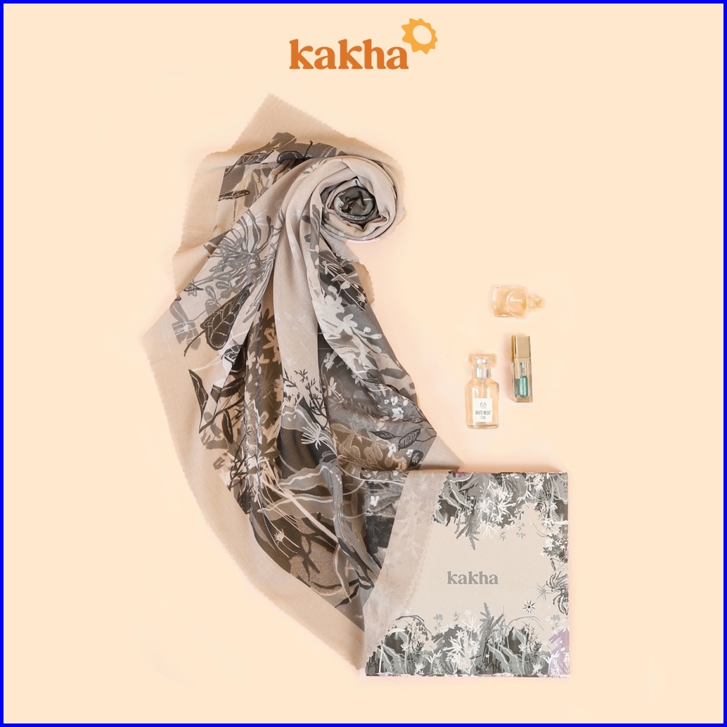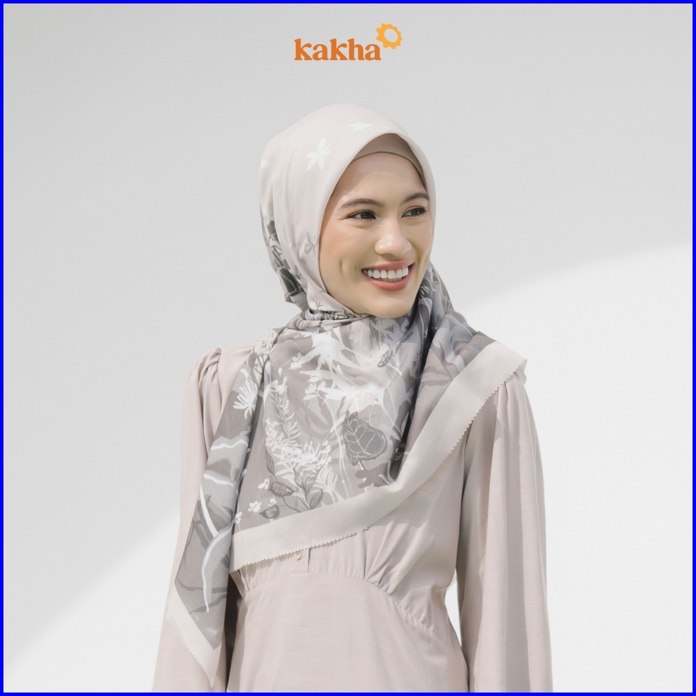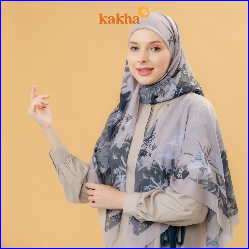 Kakha X Alyssa Soebandono - Hijab Motif Print Light Grey Kakha Hijab Motif
