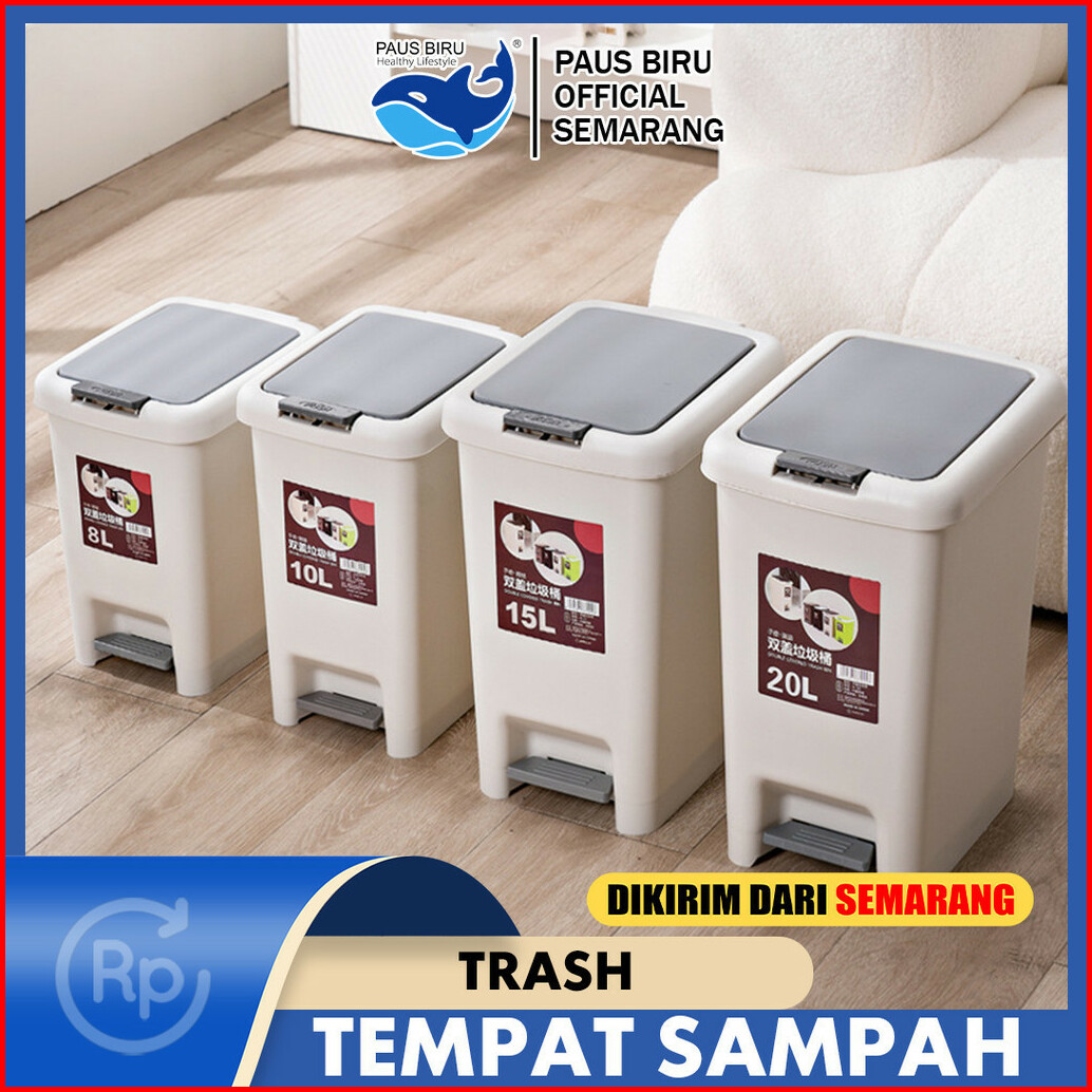 Paus Biru - Tempat Sampah Injak 8l 10l 15l 20l Tong Sampah Plastik Tertutup Trash Bin Kotak Sampah Dapur Kamar Mandi Rua
