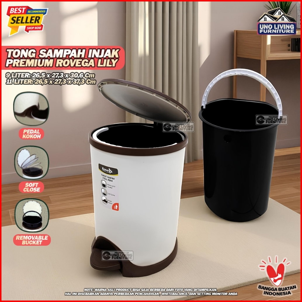 Tempat Sampah Tong Sampah Injak Tempat Sampah Rovega Lily Original Dust Bin 11 Liter Tong Sampah Murah