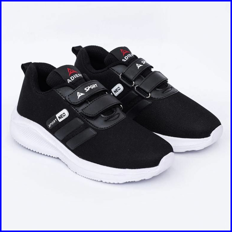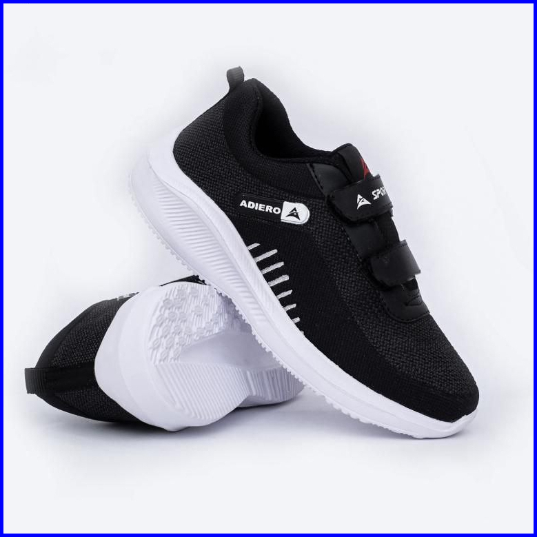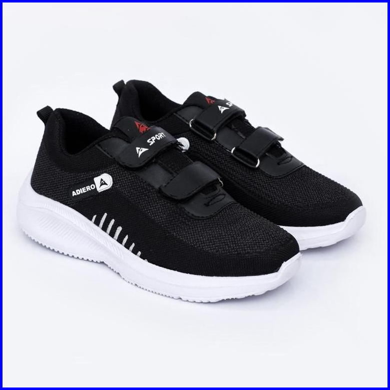 Adiero Sepatu Anak Sekolah Laki Perempuan Sneakers Velcro Original Warna Hitam Putih Size 28 - 40