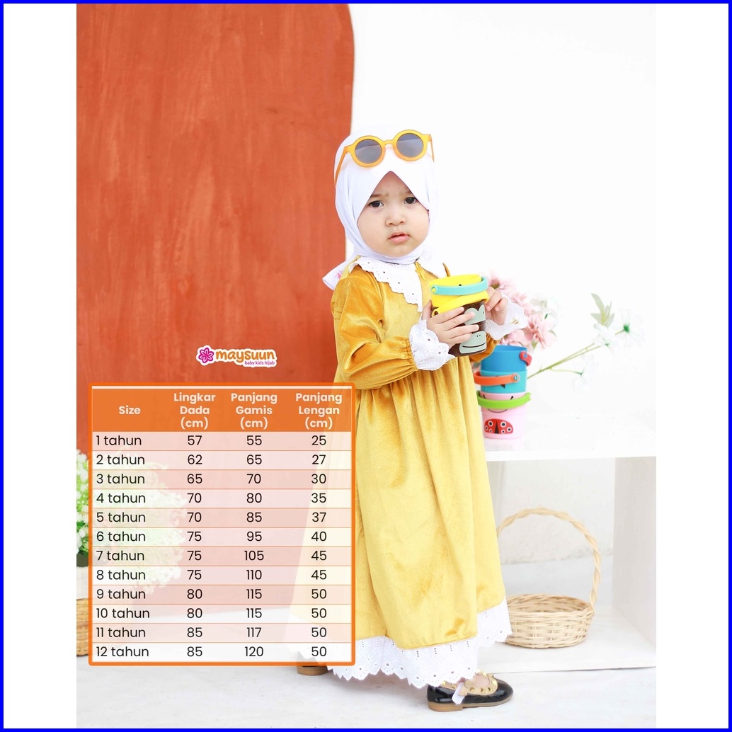 Maysuun Hijab Gamis Anak Alena Gamis Bayi Anak Usia 1 - 11 Tahun - Velvet Suede
