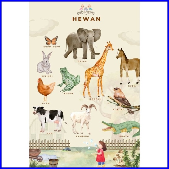 Bebegenic - Poster Edukasi Anak Variasi Hewan Poster Belajar Mainan Anak Poster Edukasi Aesthetic