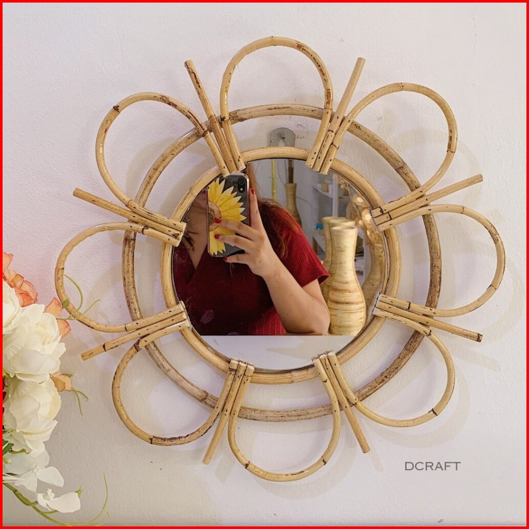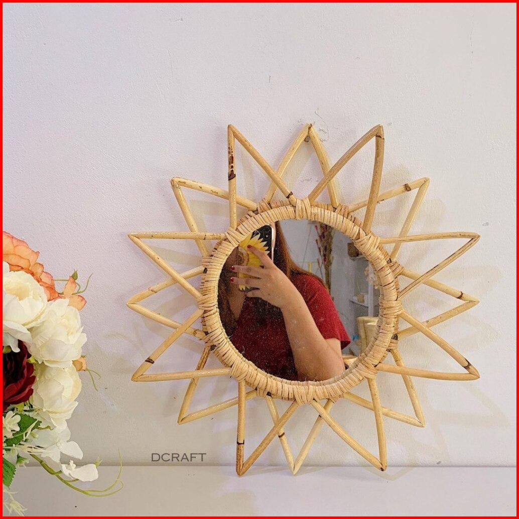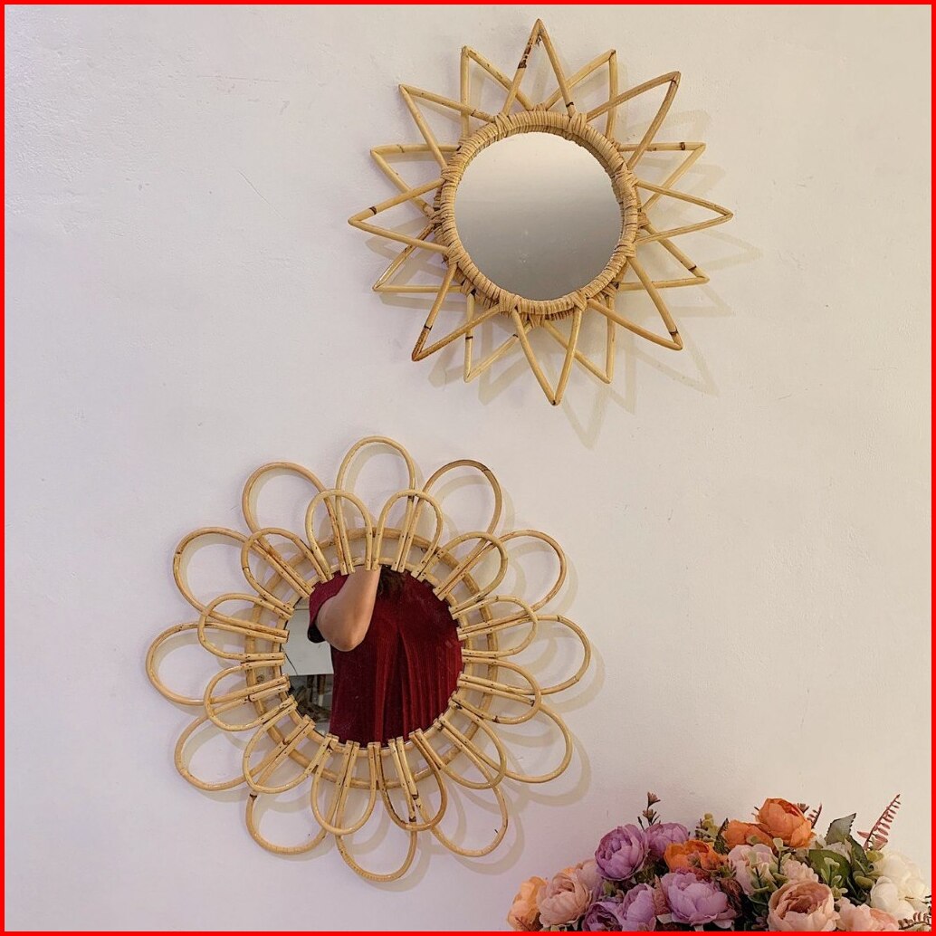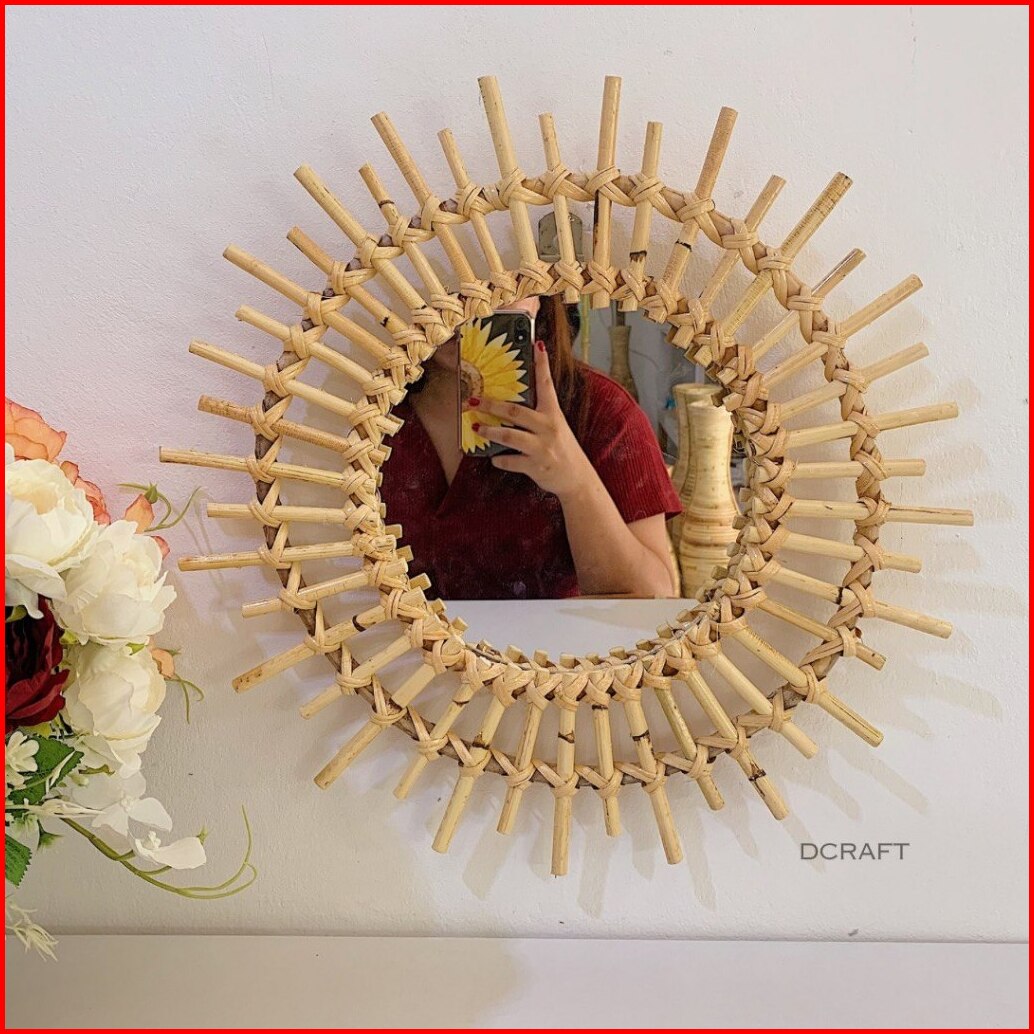 Cermin Rotan Cermin Dinding Estetik Natural Dekorasi Kaca Rotan