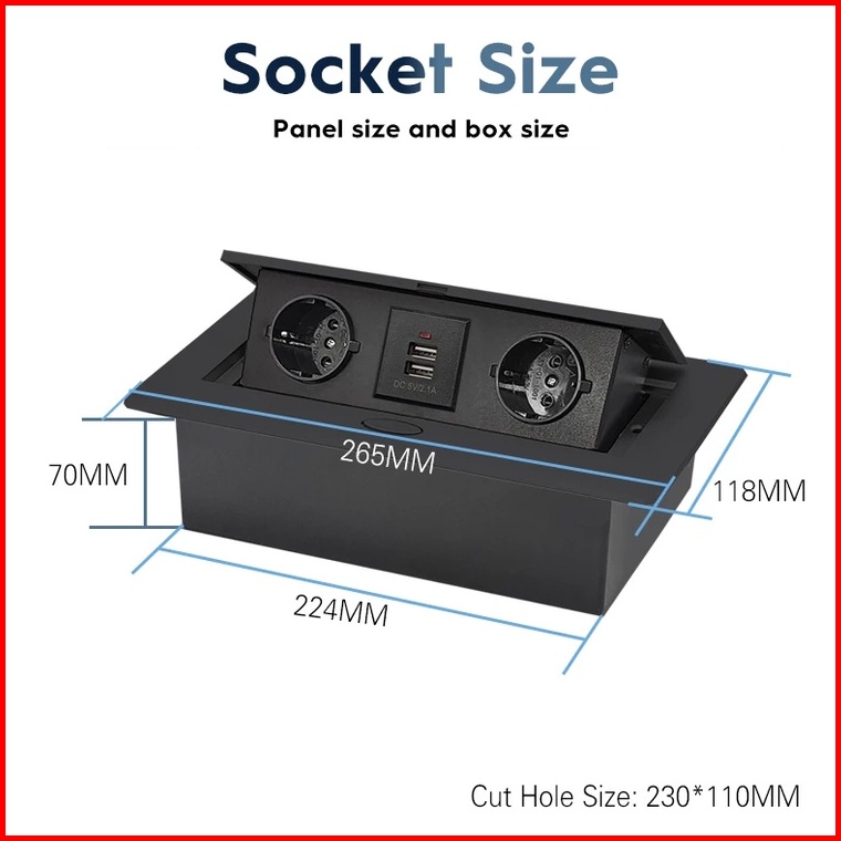 3000w Soket Tertanam Soket Tertanam Desktop 3 Lubang Soket Konferensi Pop-up Meja
