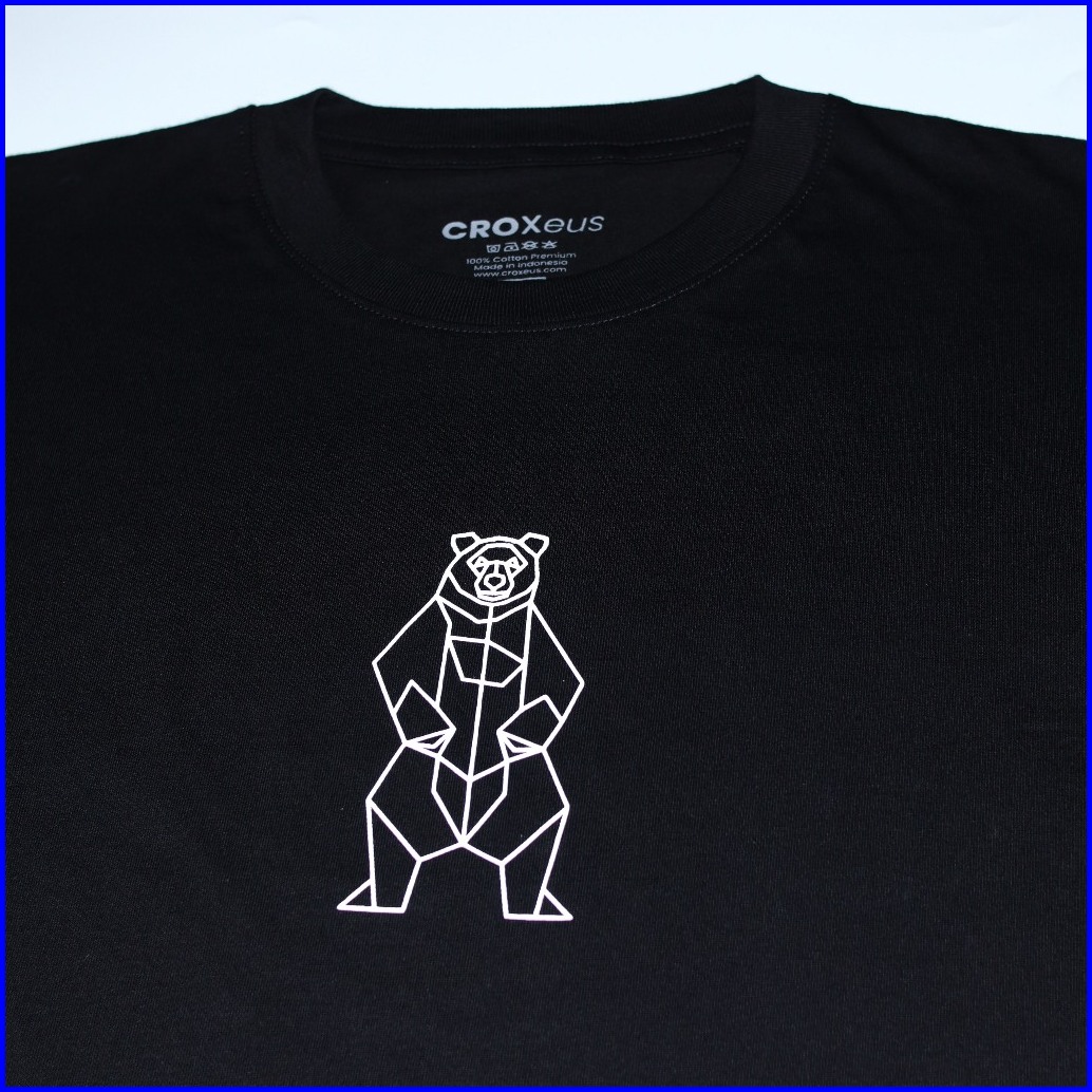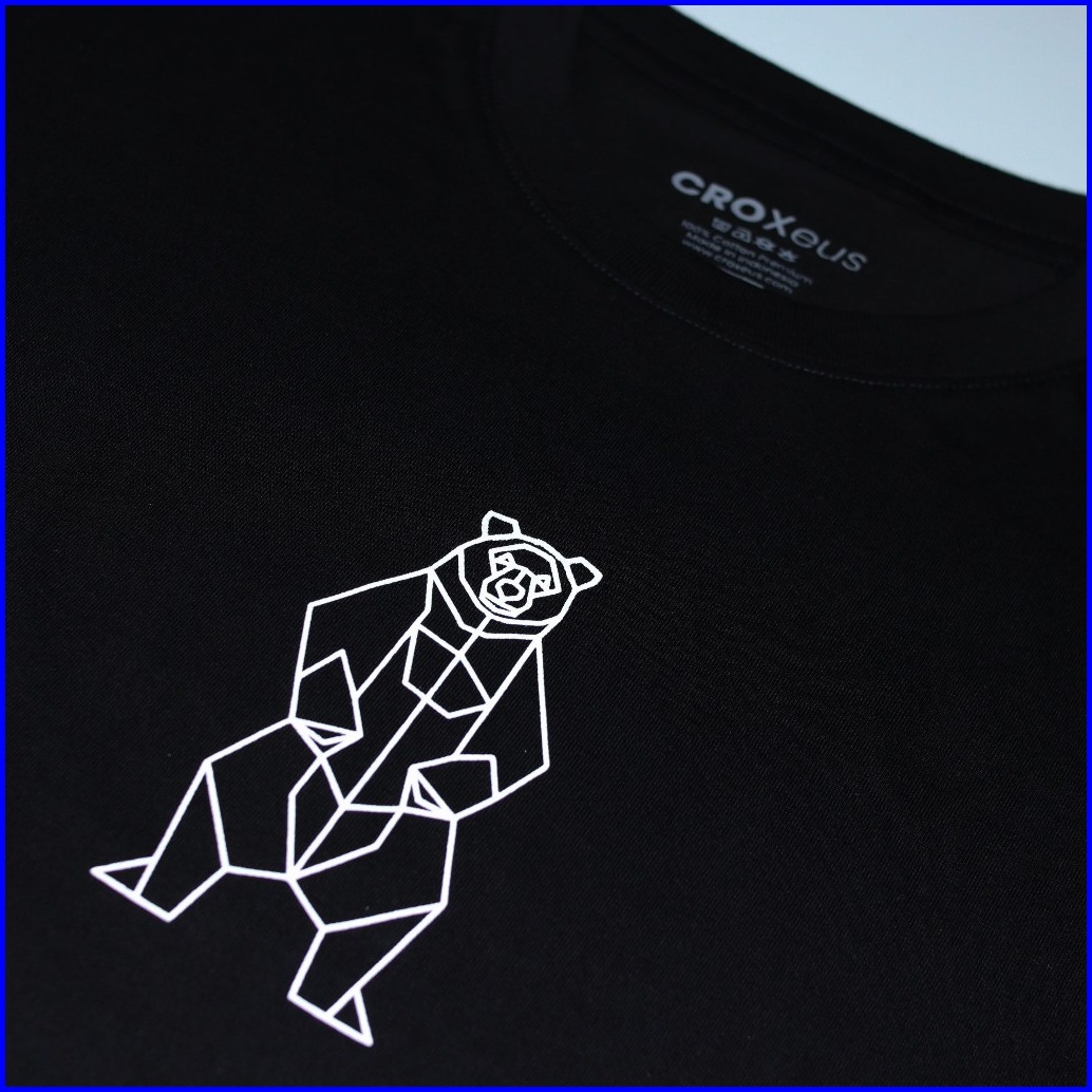 Croxeus - Kaos Pria Dan Wanita Hitam Geometric Bear Lengan Pendek