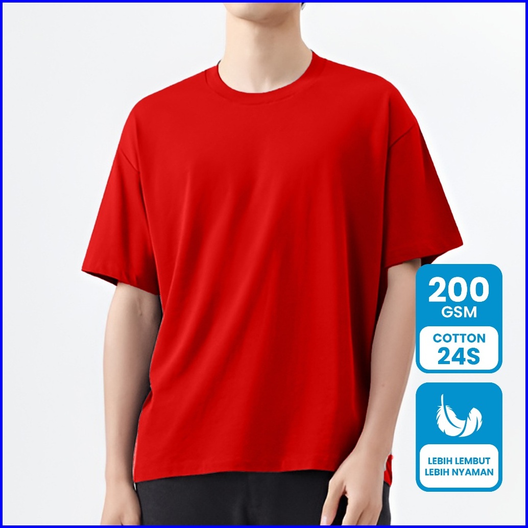 Flox T-shirt Regular Fit Kaos Merah Polos Pria Wanita Cotton Combed 24s