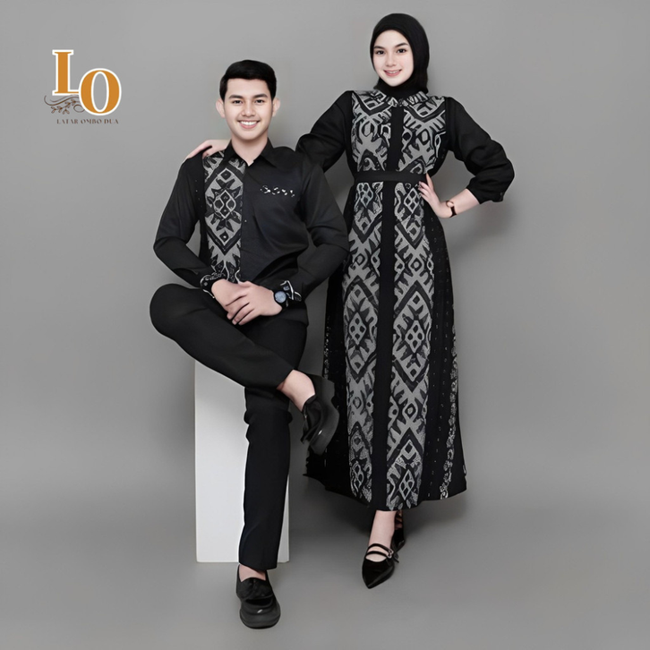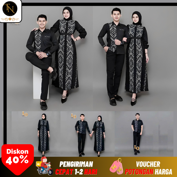 Baju Couple Pasangan Batik Tenun Couple Kondanggan Gamis Dres Hitam Wanita Kemeja Pria Formal Acara Baju Lebaran 2026