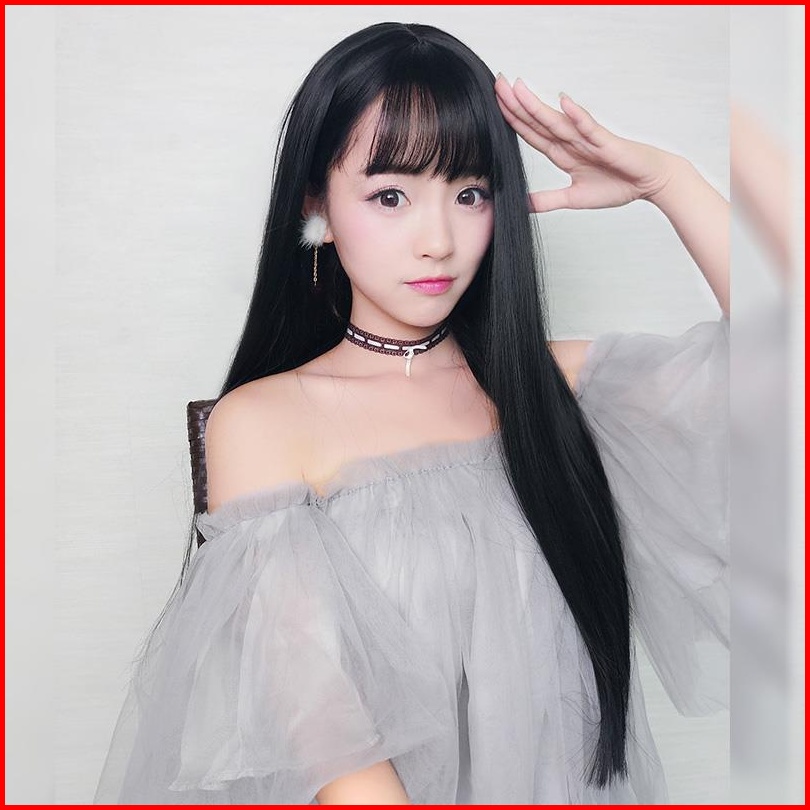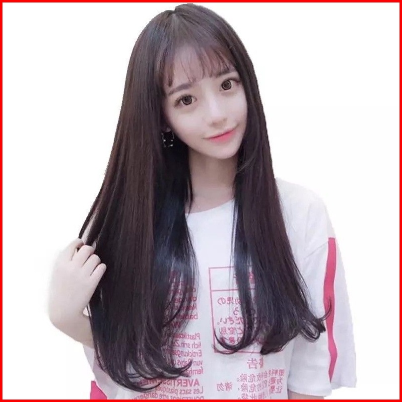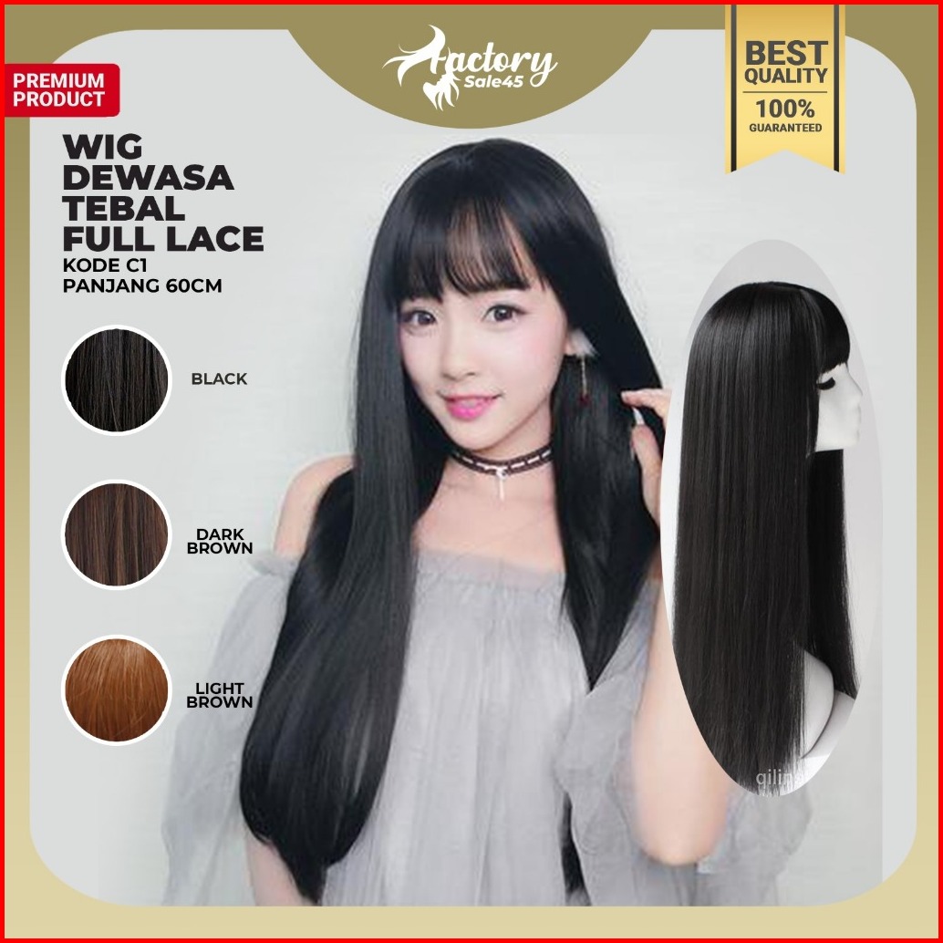 Wig Lurus Panjang Full Lace Rambut Palsu Perempuan Dewasa Hair Extension Long Straight Poni Depan C1 F697