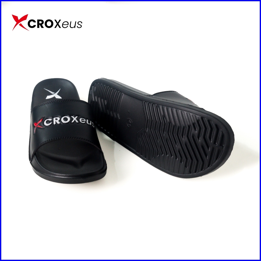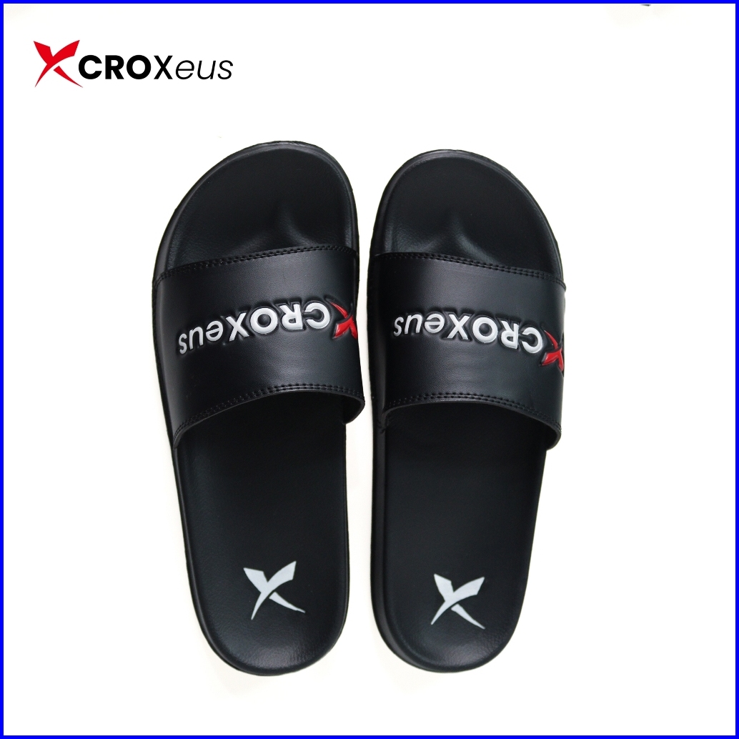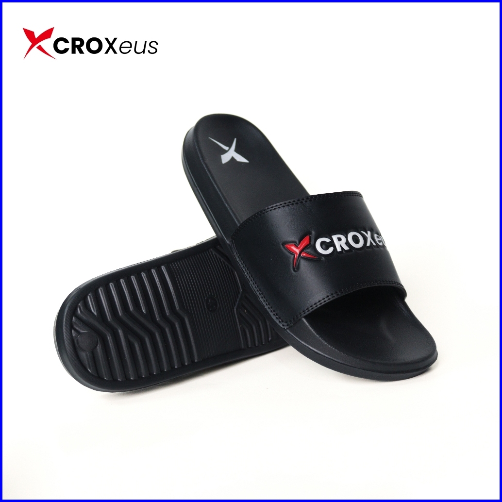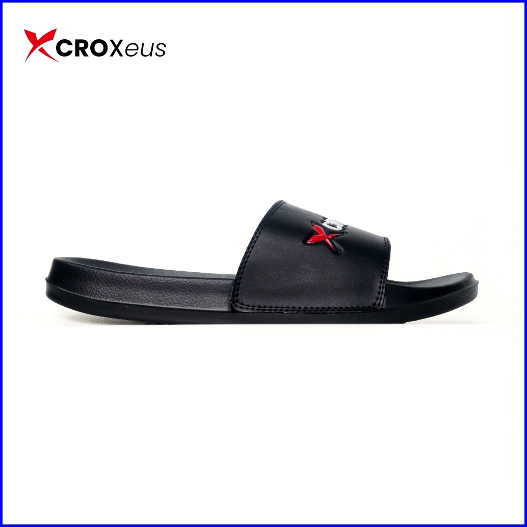 Croxeus - Sandal Slop Slipper Hitam Pria Wanita Sendal Anti Slip Black Red Basic