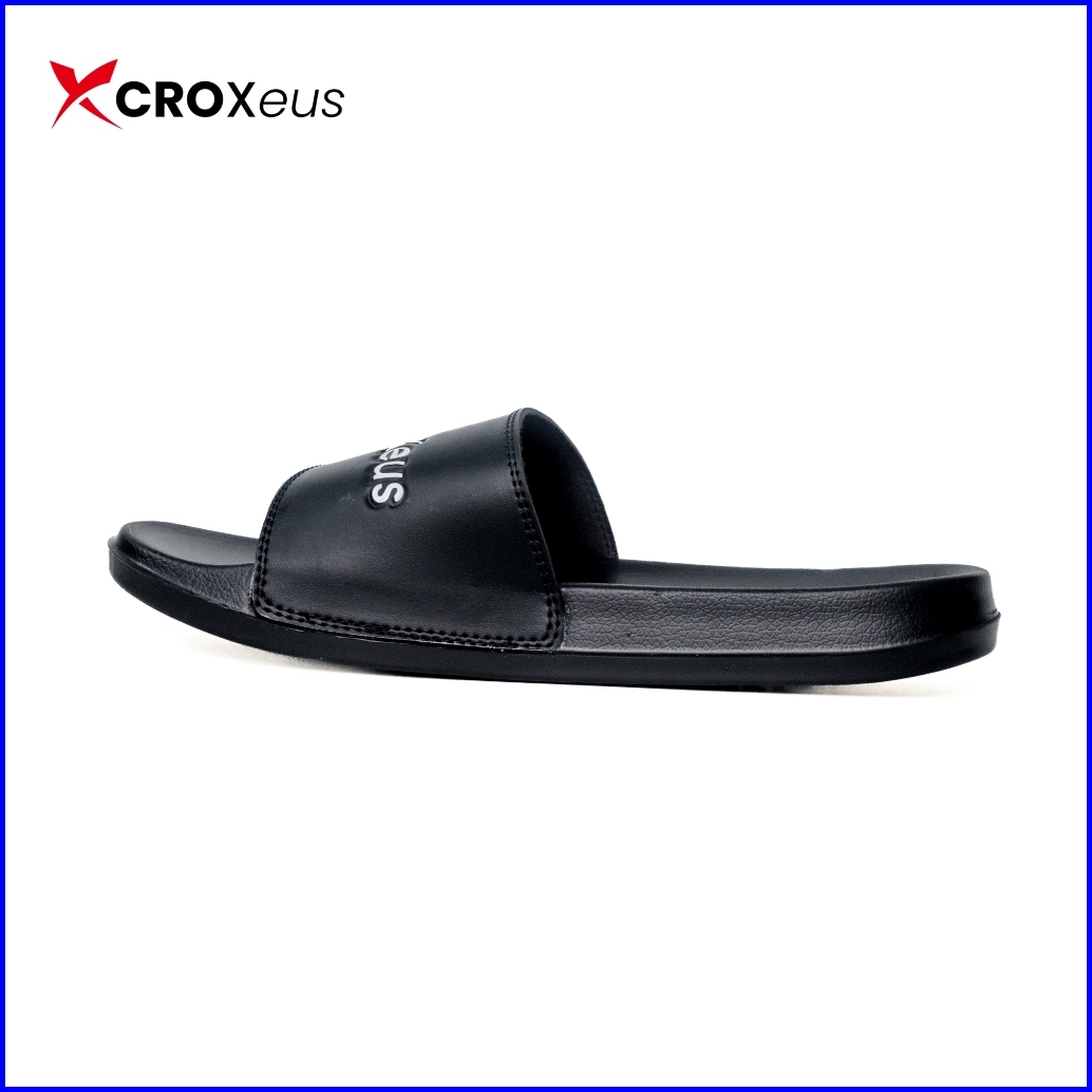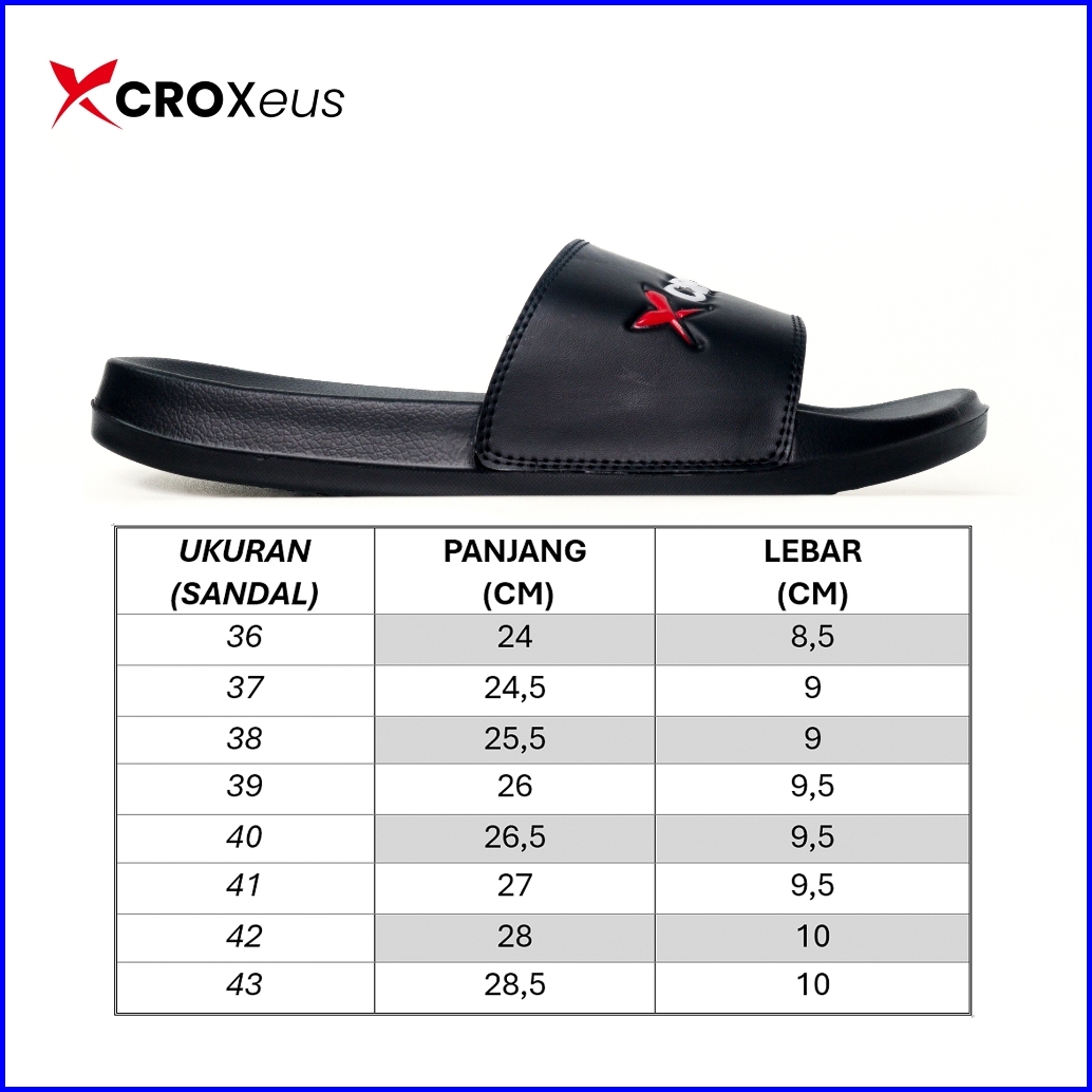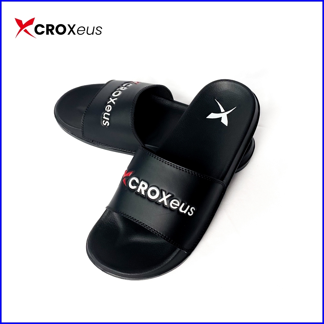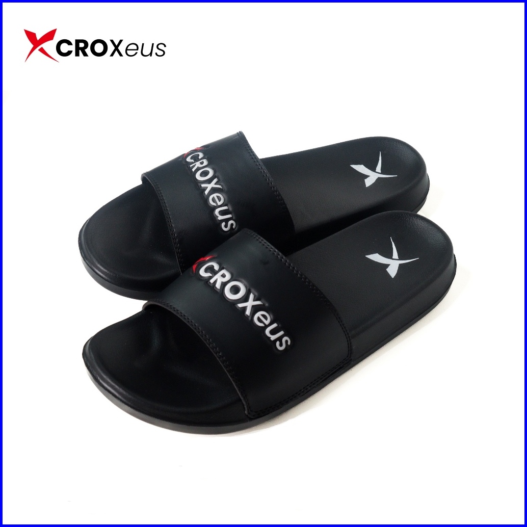 Croxeus - Sandal Slop Slipper Hitam Pria Wanita Sendal Anti Slip Black Red Basic