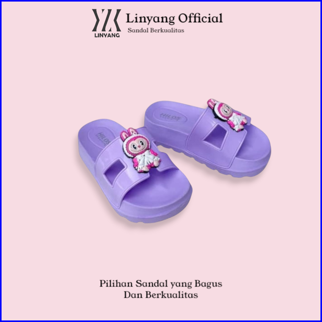 Sandal Selop Sendal Motif Labubu Model Slip On Anak Perempuan Bahan Karet Eva Rubber