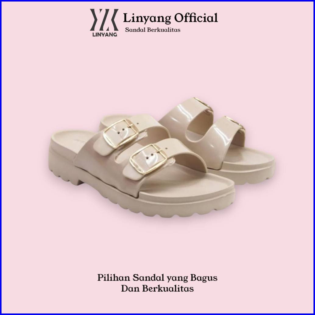 Sandal Slide Sendal Wanita Dewasa Slipon Strap Dua Tren Baru Bahan Karet Eva Rubber