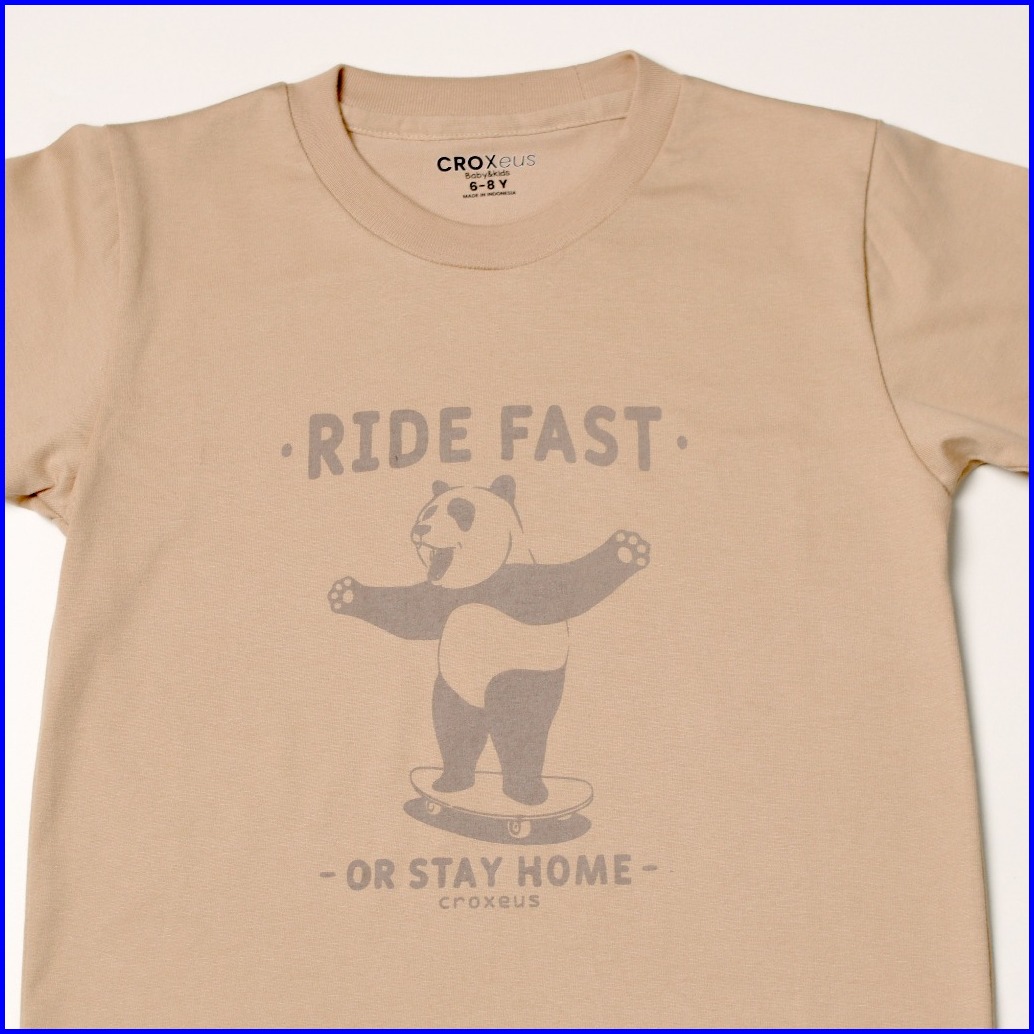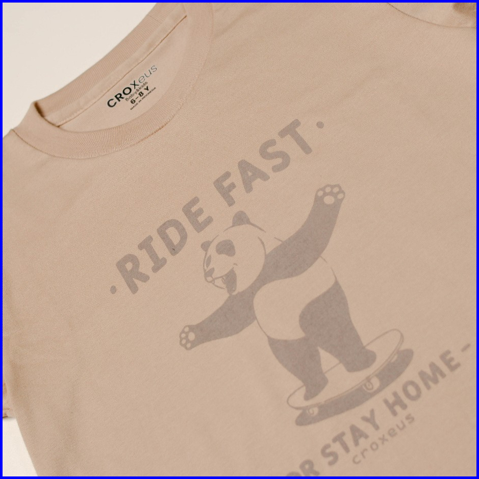 Croxeus - Kaos Anak Laki-laki Dan Perempuan Lengan Panjang Panda Warna Coklat Susu