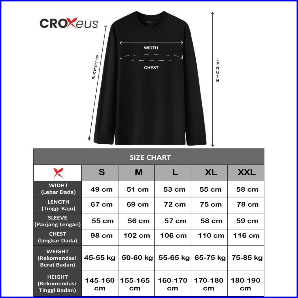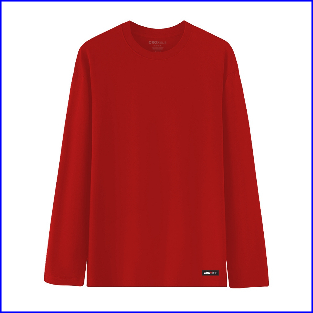 Croxeus - Kaos Polos Wanita Pria Lengan Panjang Bahan Katun - Hitam