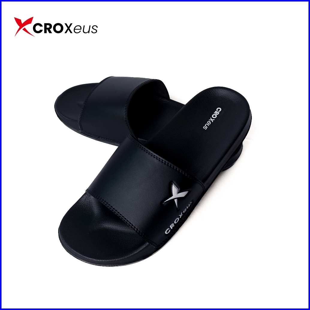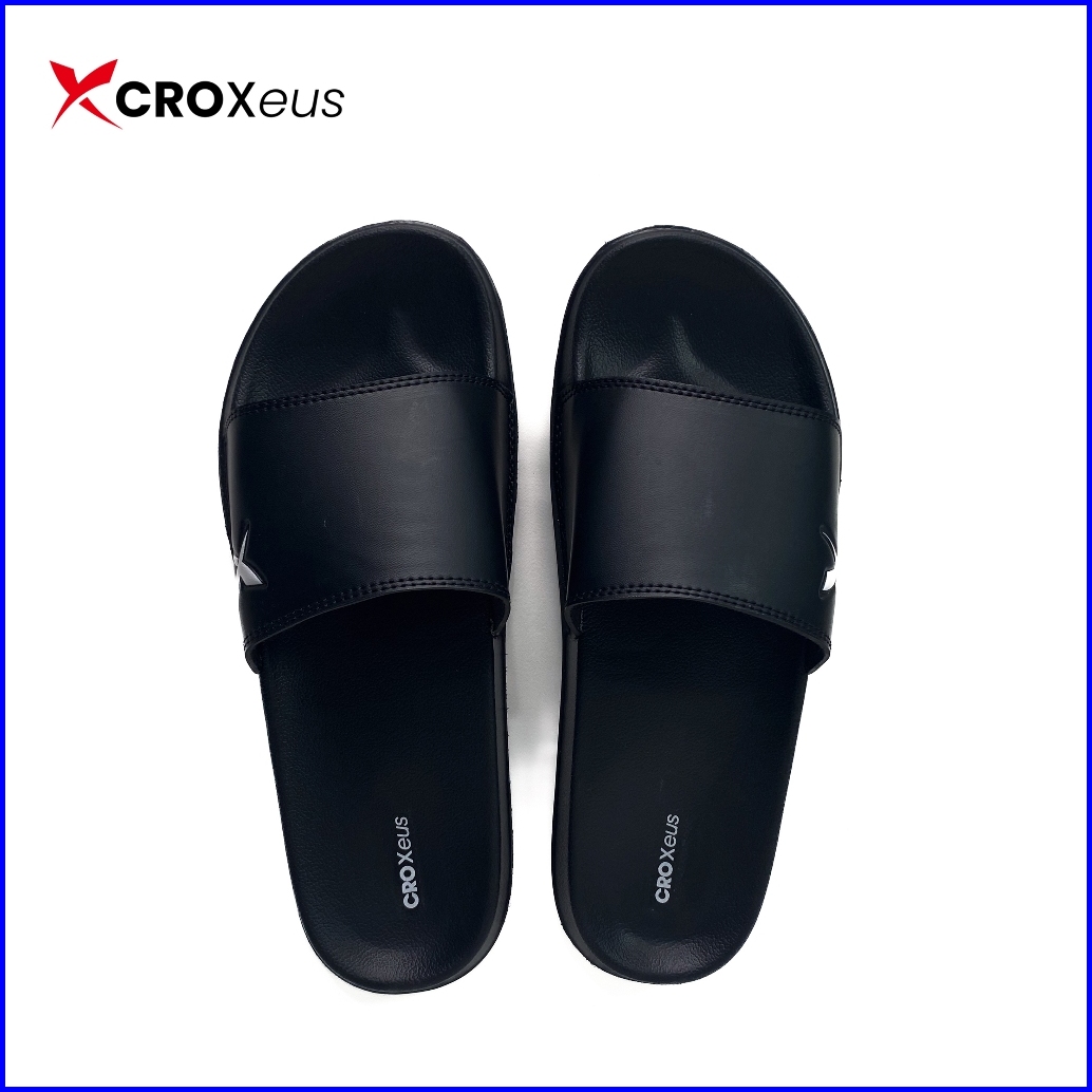 Croxeus - Sandal Slop Pria Wanita Sendal Anti Slip Black White Simple