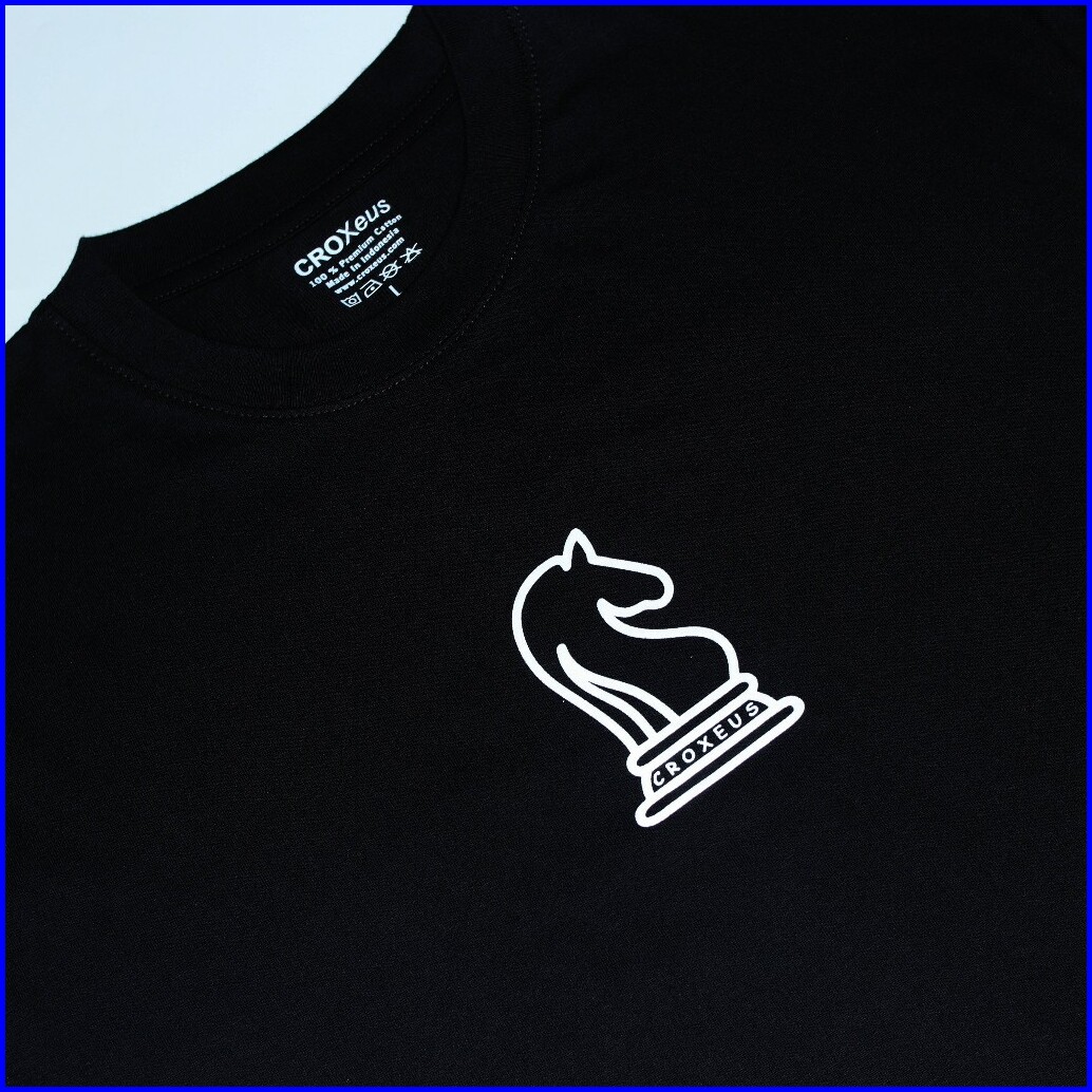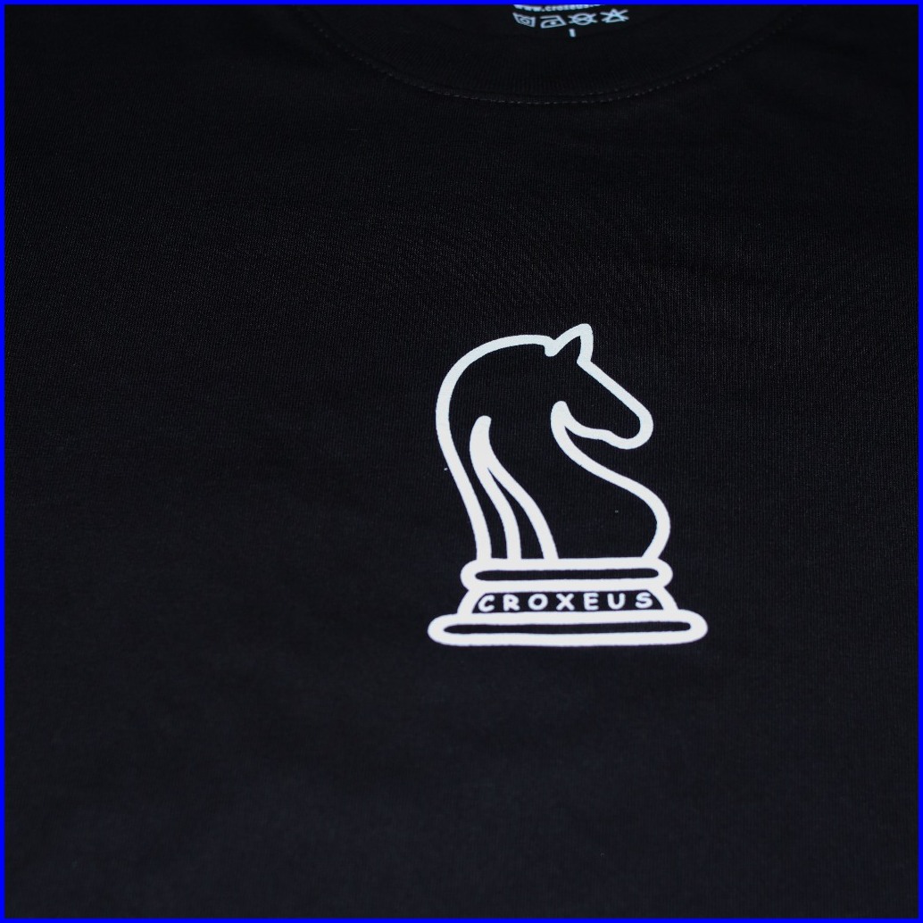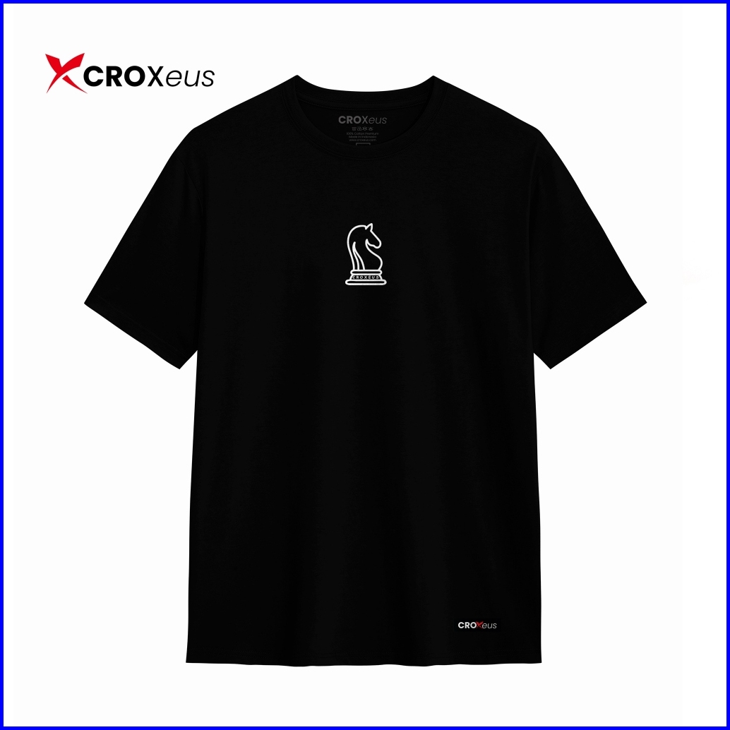 Croxeus - Kaos Pria Dan Wanita Hitam Horse Chess Lengan Pendek