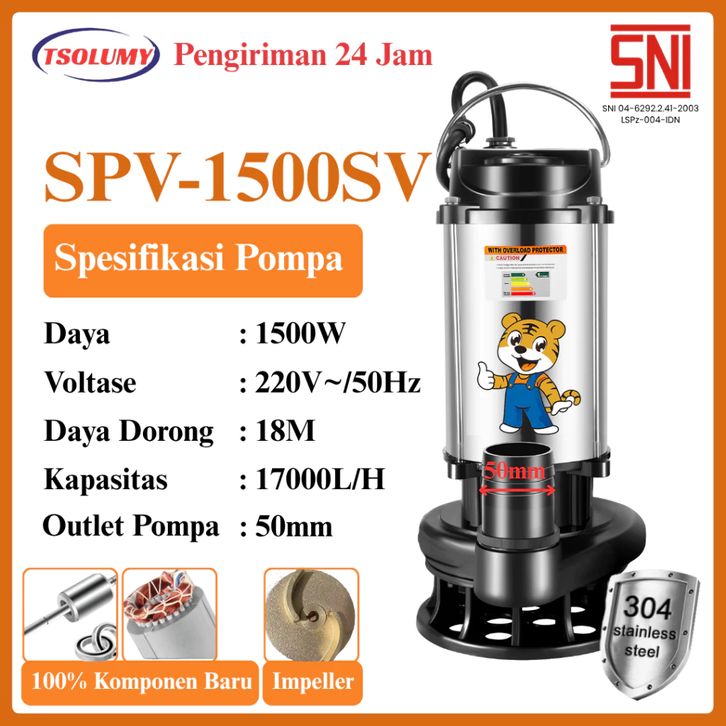 TANPA DP Pompa Celup Air Kotor 1500W sewage pump 3inch Mesin Pompa Air Murah pompa submersible limbah TSOLUMY TERLARIS