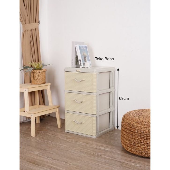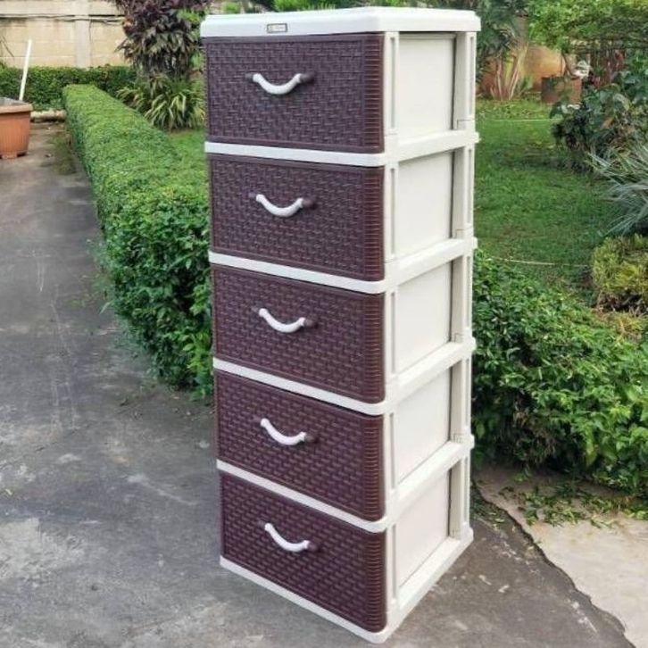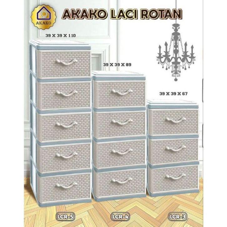 Lemari Laci Plastik Akako 5 Susun Motif Rotan Multifungsi & Hemat Tempat Diskon 30%