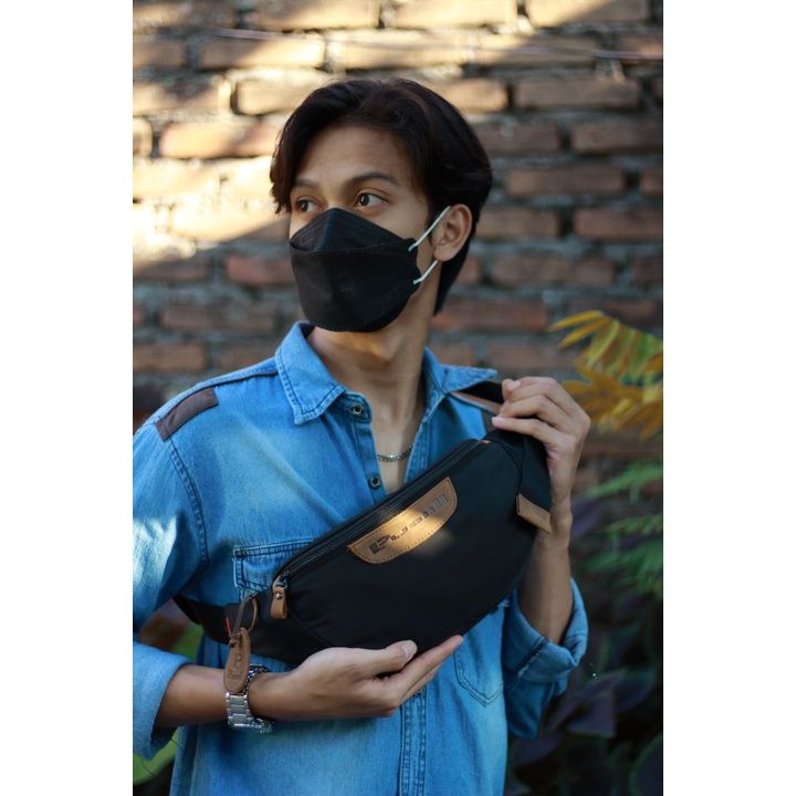 Pusiill-Waistbag Pria dan Wanita/Tas Selempang kombinasi kulit sapi Asli/ Tas Pinggang A05
