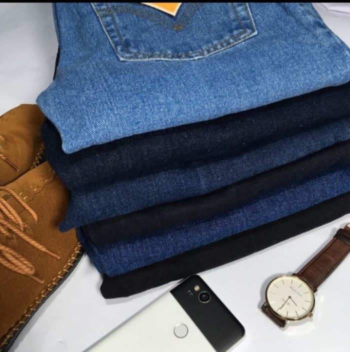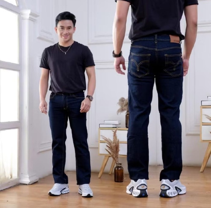 CELANA JEANS STANDAR PANJANG REGULER PRIA BAHAN DENIM TERBARU - HITAM, 27 BB 45-47 KG
