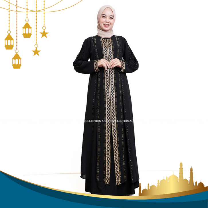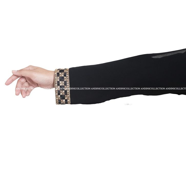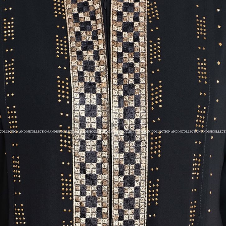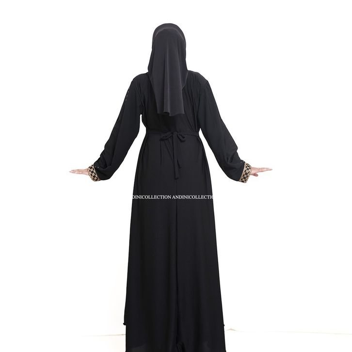 GAMIS LEBARAN KEKINIAN Andinicollection Abaya Turkey 476 Amarta Hitam Putih Dewasa Muslim Bordir dan Payet Mewah