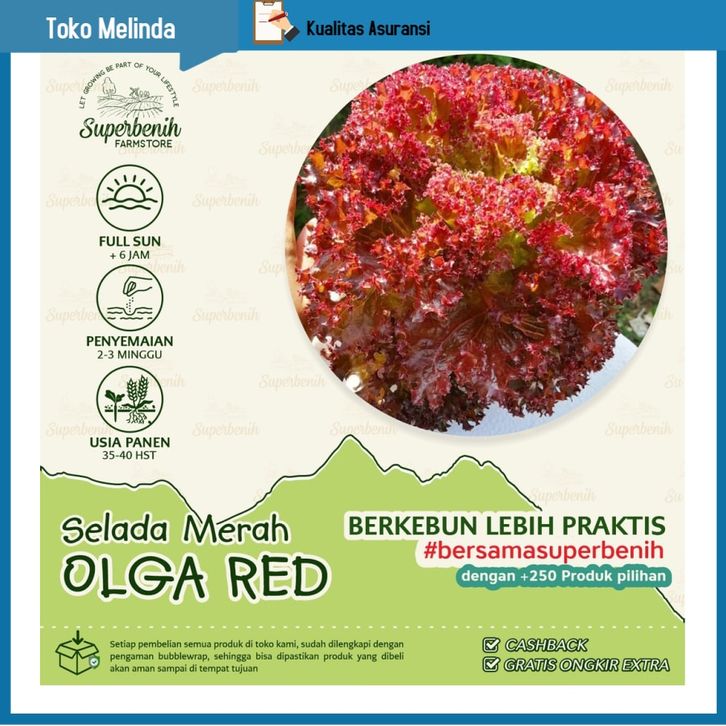 150 Biji Benih Selada Keriting merah OLGA RED umur panen 42 hari