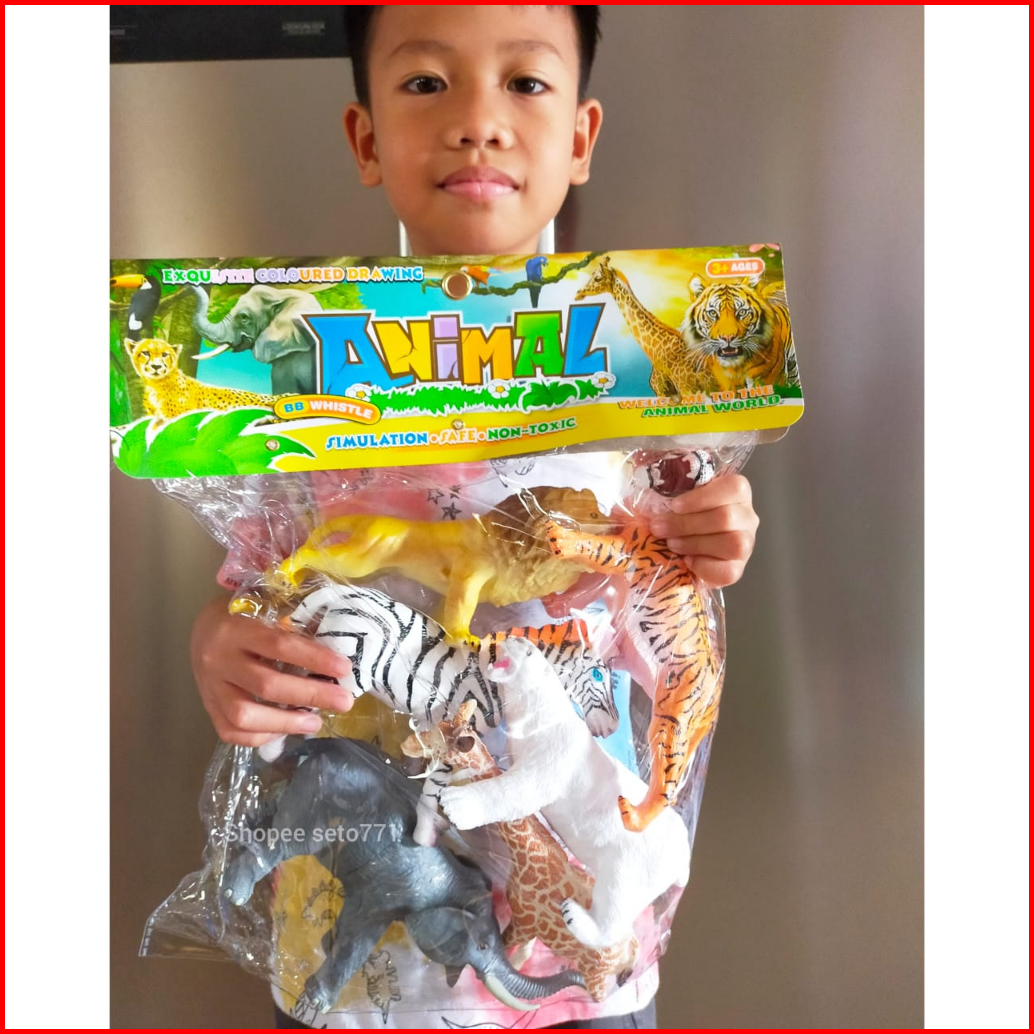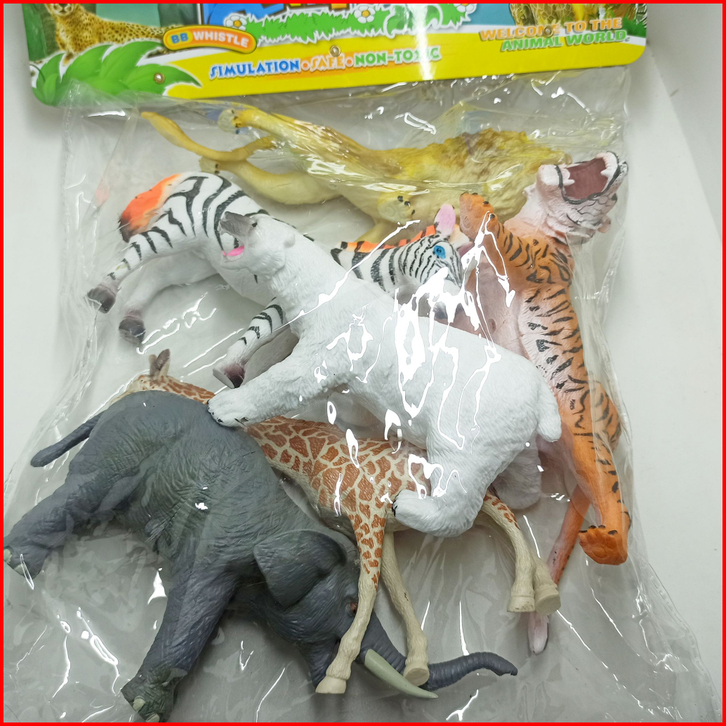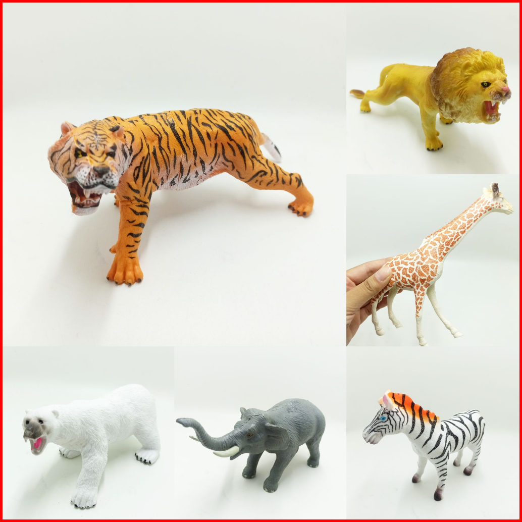 20cm 6pcs Mainan Anak Satu Set Hewan Besar Liar Animal Cit Rubber Bunyi Cit Figur Macan Singa Zebra Gajah Jerapah Jumbo
