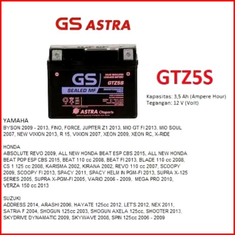 Aki Motor Gs Astra Otoparts Asli Gtz5s Aki Motor Yamaha Mio Soul Mio J Mio Gt Mio Z Fino Xeon Xride Byson Vixion Aki Ker