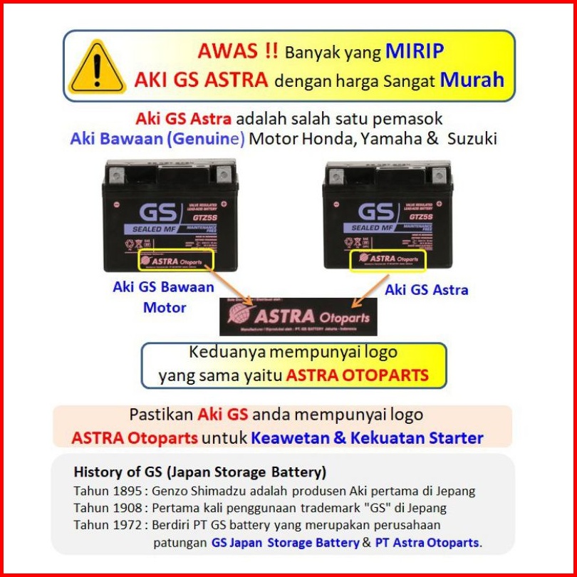 Aki Motor Genuire Gs Astra Mf Gtz5s Beat Vario Mio M3 Scoopy Supra X125