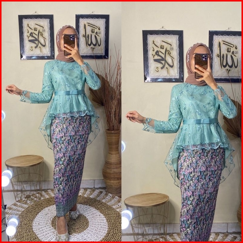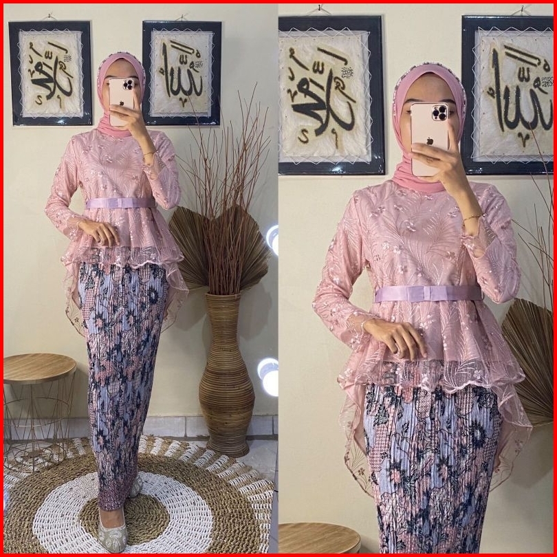 Setelan Kebaya Aurora Tile Setelan Kebaya Aurora Tille Qiana Set Kebaya Wisuda Set Kebaya Kekinian Kebaya Modern Kebaya