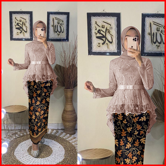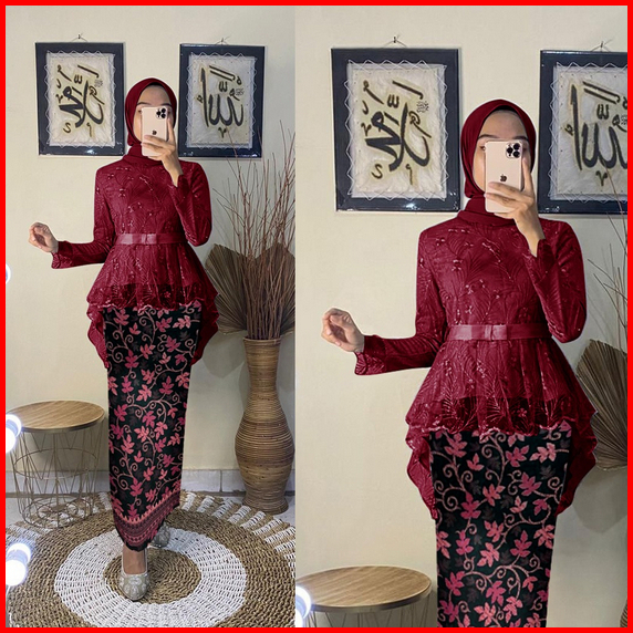 3 Ukuran Setelan Kebaya Aurora Tille Qiana Rok Batik Panjang Dewasa Baju Kebaya Muslim Modern Set Kebaya Prempuan Buat A
