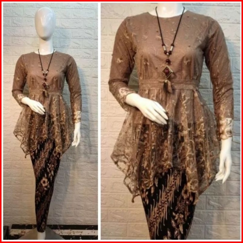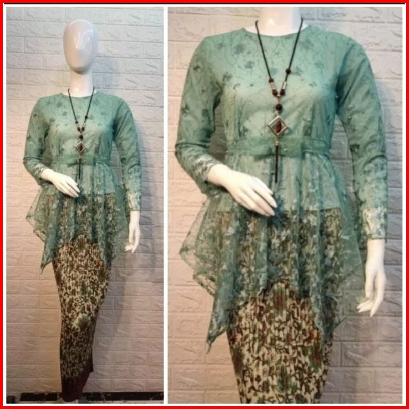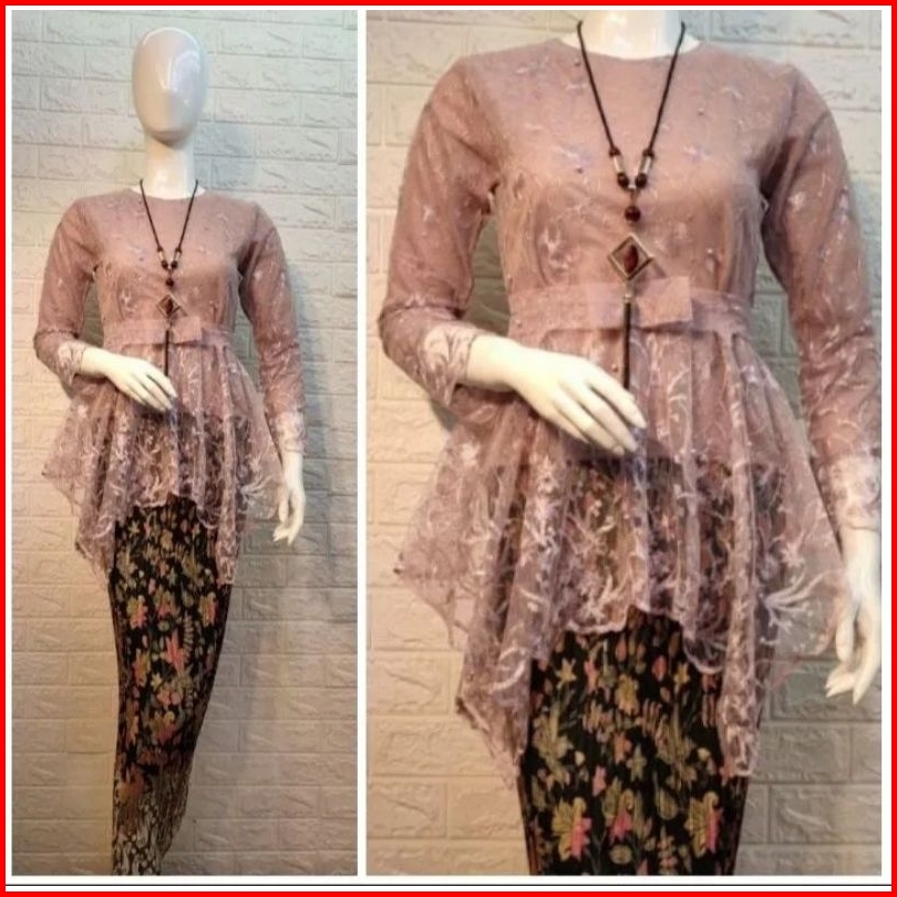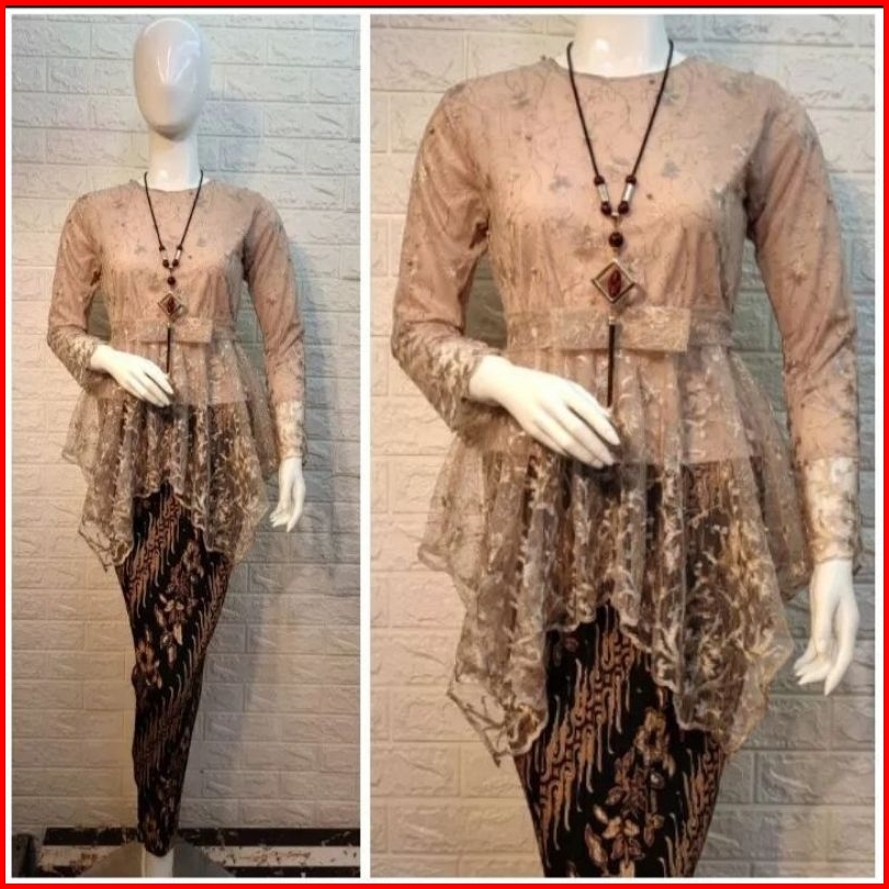 Setelan Kebaya Aurora Tille Model Cumi Qiana Rok Plisket Batik Panjang Dewasa Baju Kebaya Muslim Modern Set Kebaya Premp