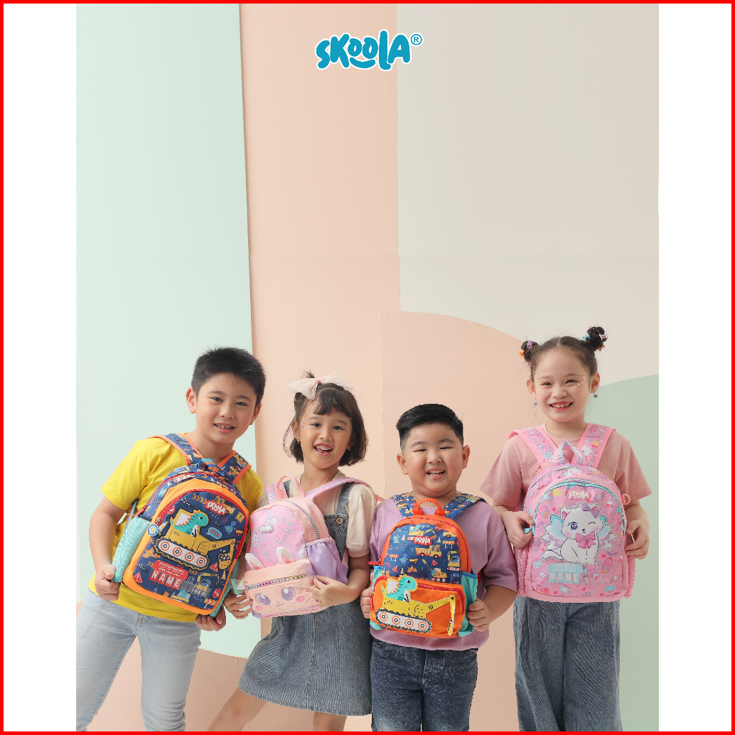 Skoola Tas Sekolah Anak Paud Tk Laki-laki Perempuan Ransel Butterfly Mermaid Rabbit Cat Backhoe Dino