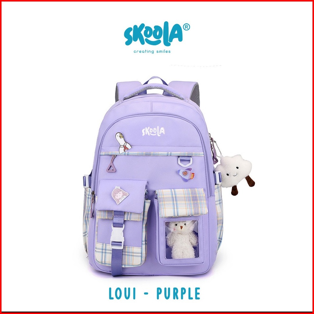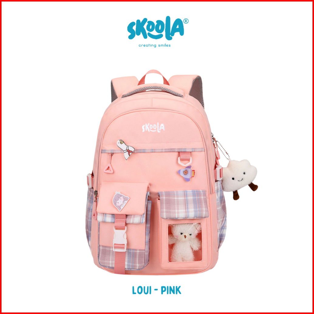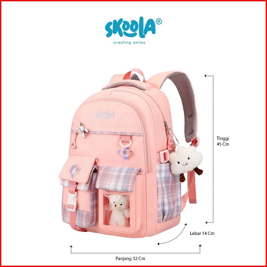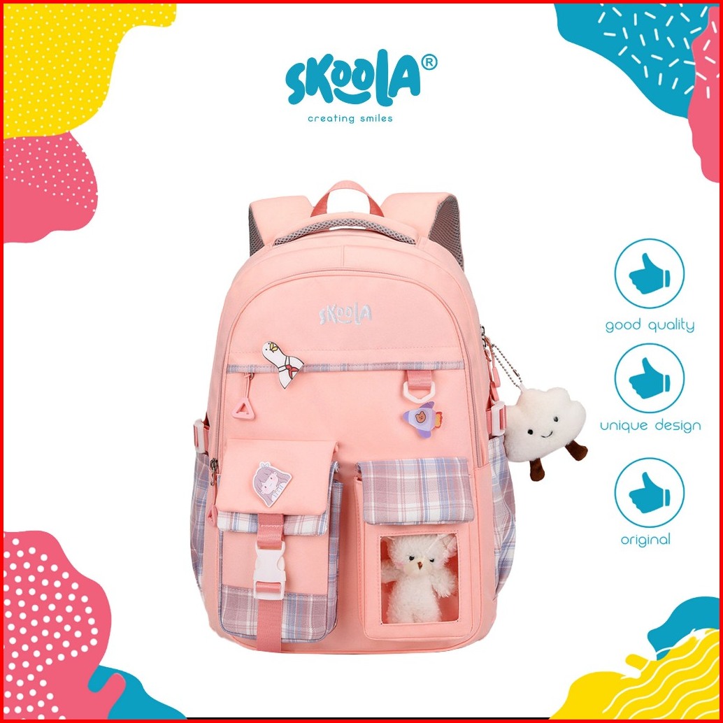 Skoola Tas Sekolah Anak Sd Perempuan Ransel Korea Free Keychain Boneka Pin - Loui
