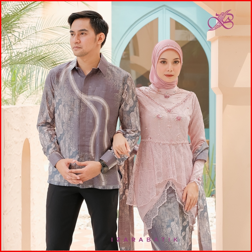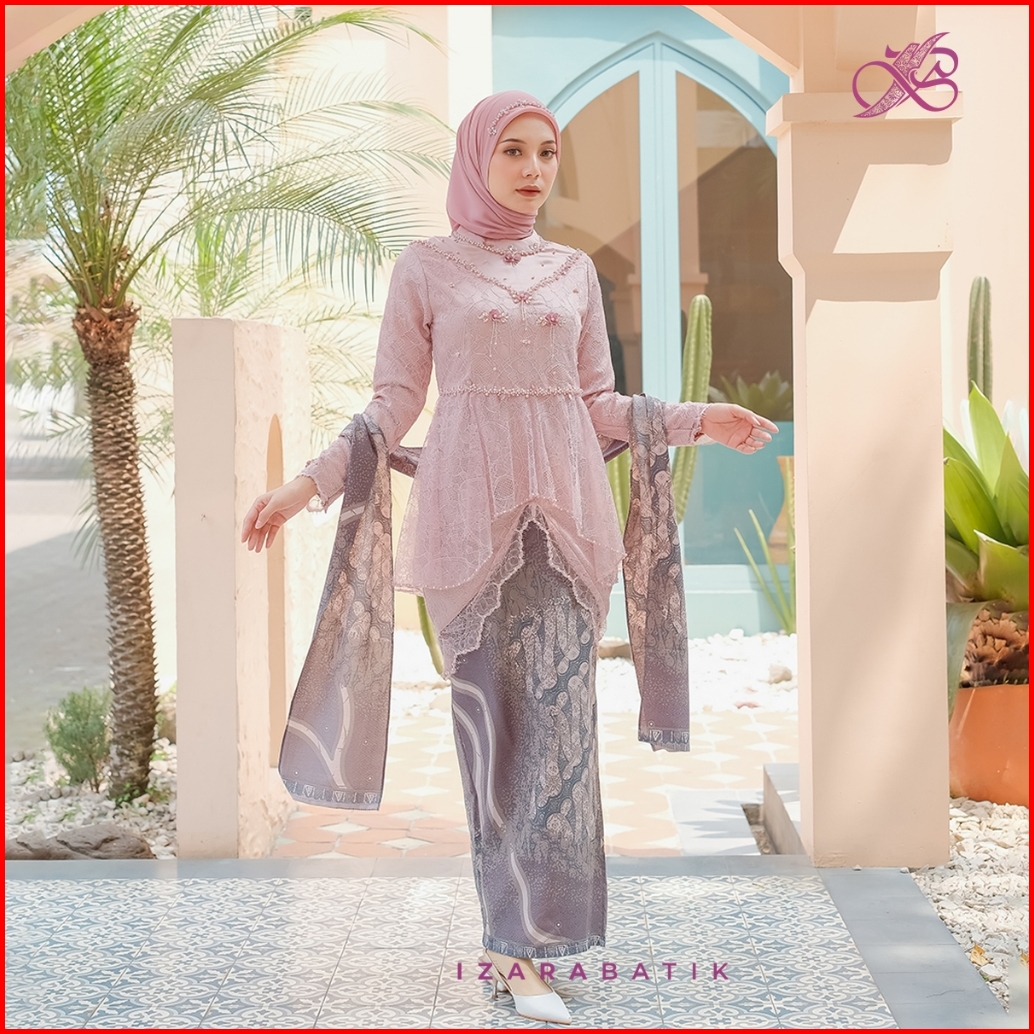Izarabatik - Shea Dusty Set Kebaya Batik Modern Couple Wisuda Lamaran Full Payet Tunangan Kondangan Bridesmaid