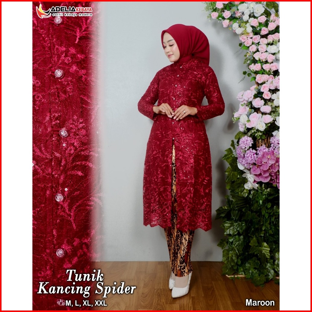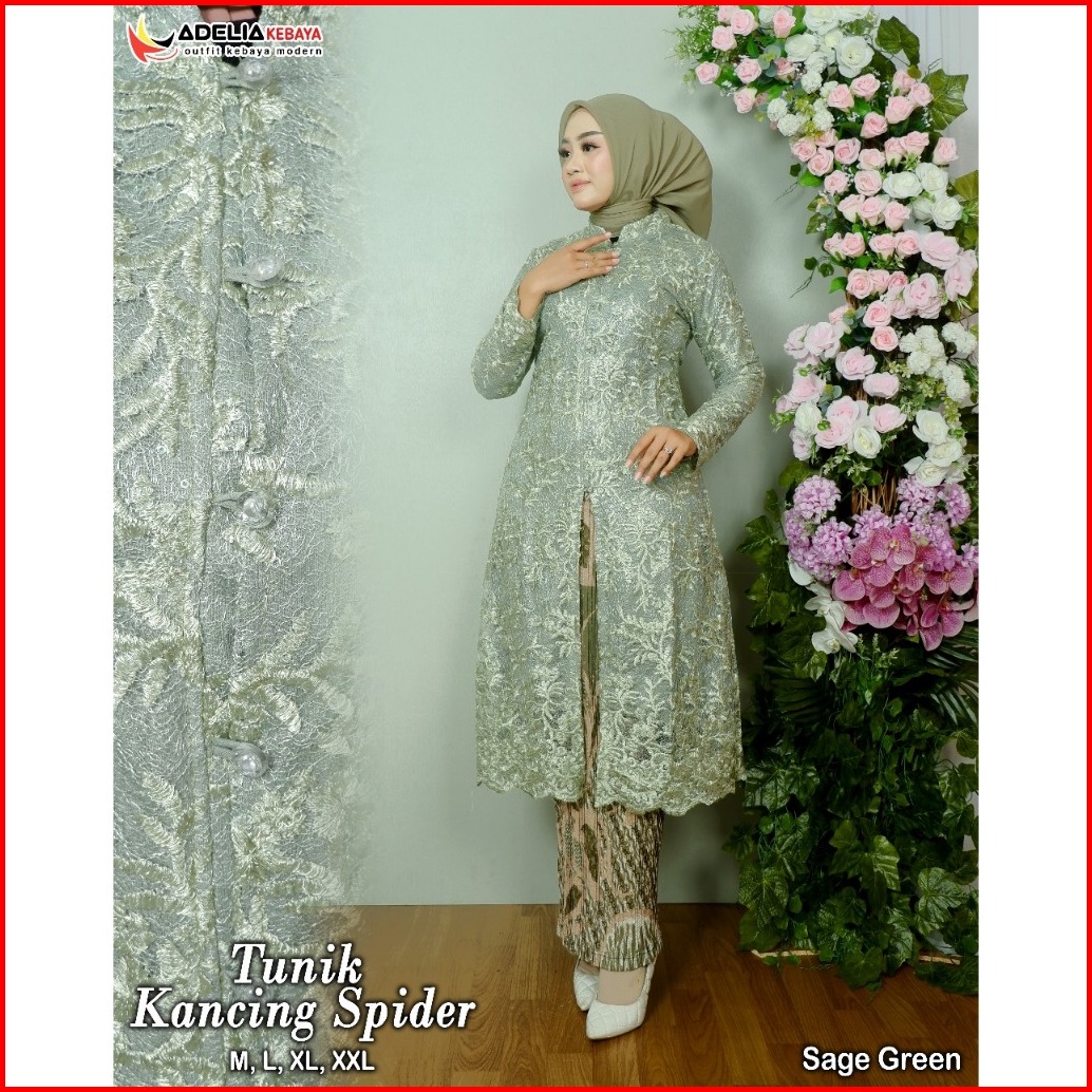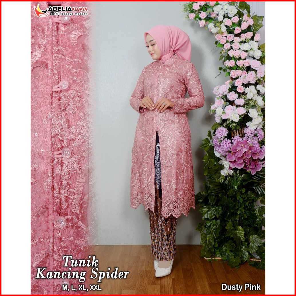 Setelan Kebaya Long Tunik Spider - Baju Wanita Kebaya Modern - Pakaian Pesta Kondangan Akad
