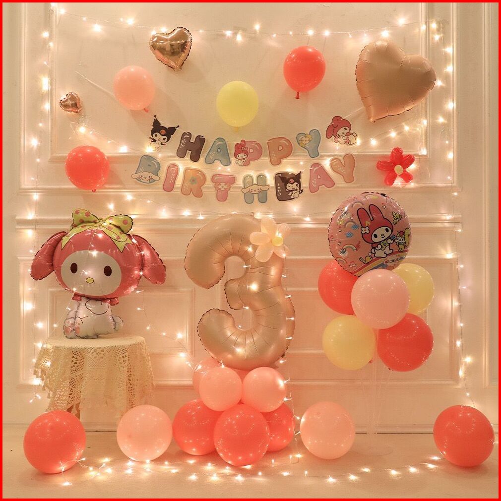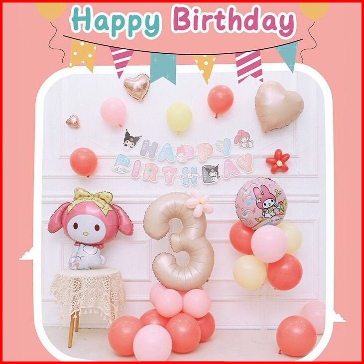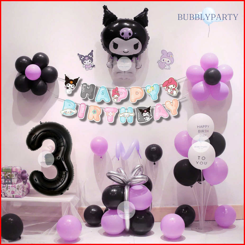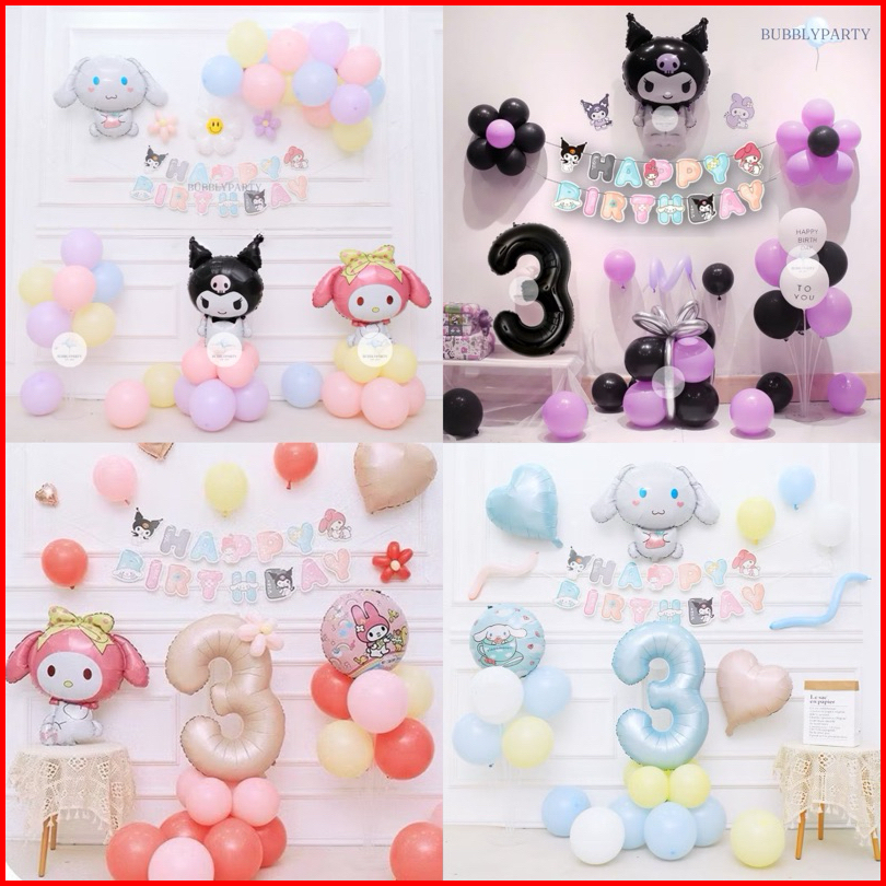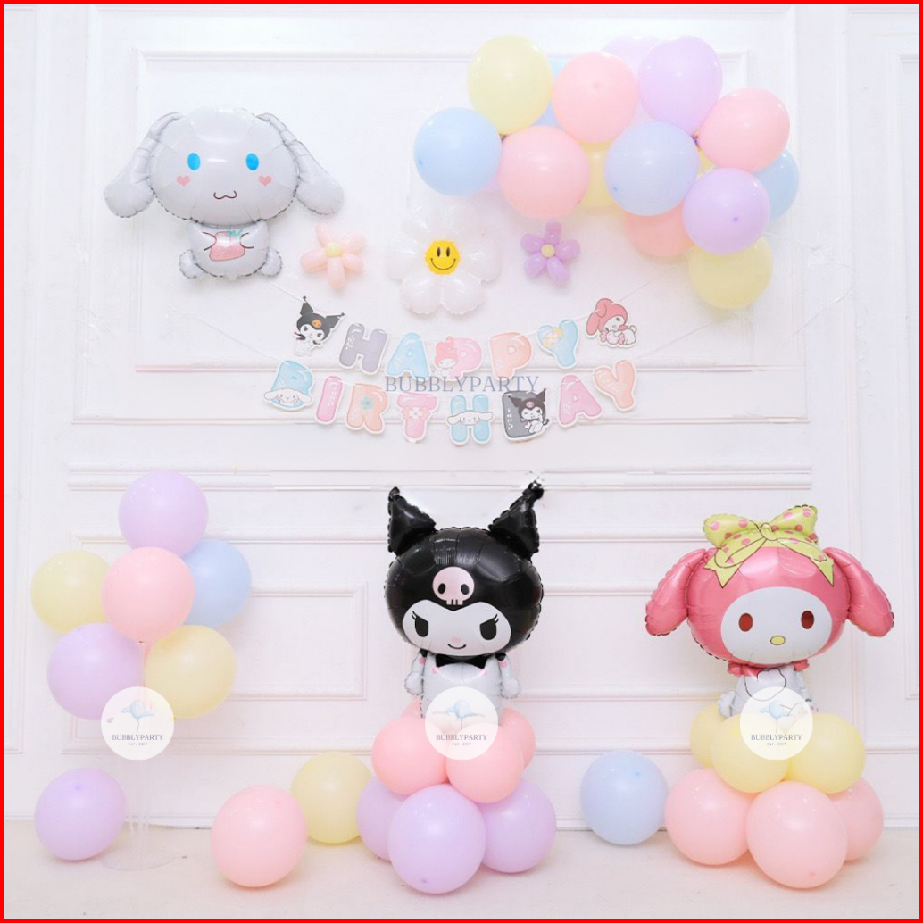 Paket Dekorasi Balon Ulang Tahun Anak Perempuan Kuromi Cinnamoroll Melody Sanrio