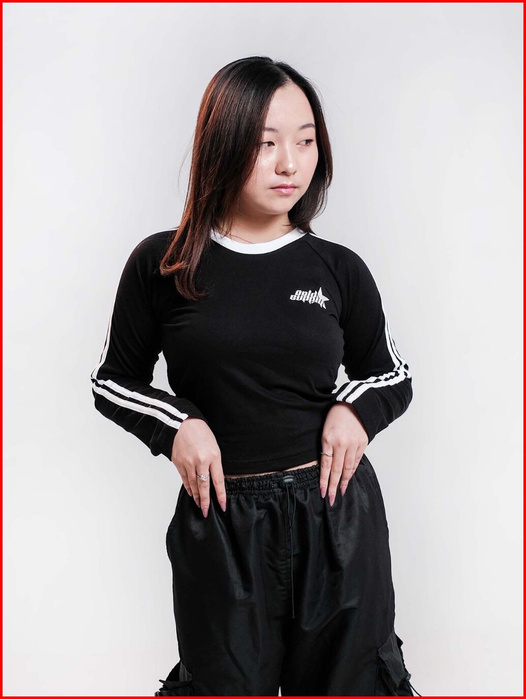 Ootdsupply Cropteefit Longsleeve Raglan Vela Embroidey Strings L Kaos Crop Lengan Panjang Clsrgvle