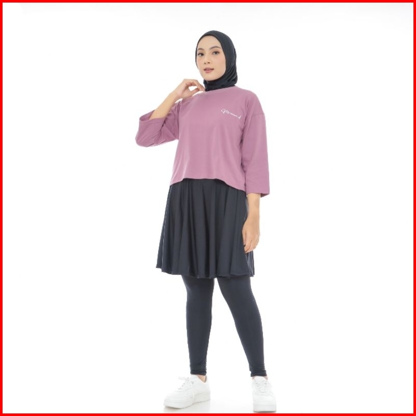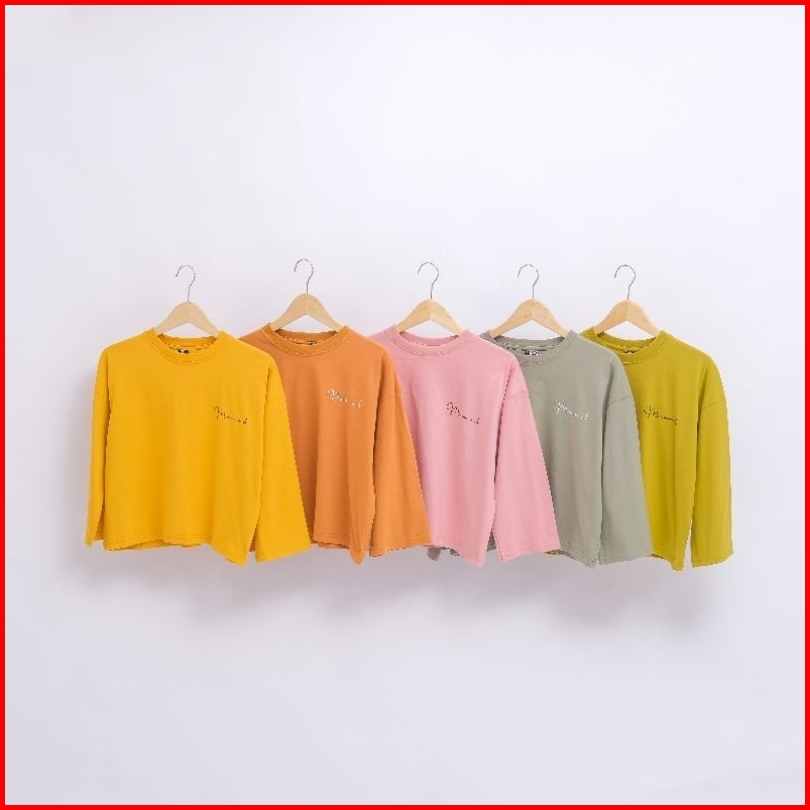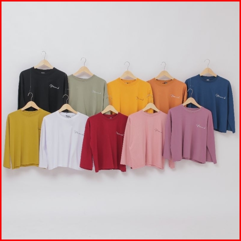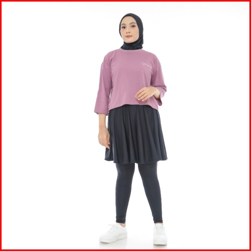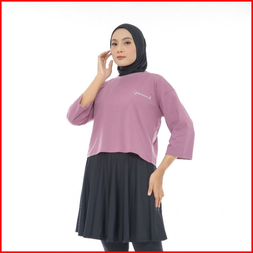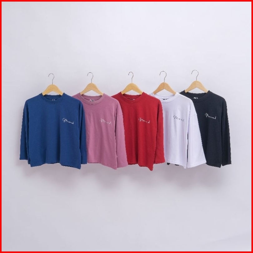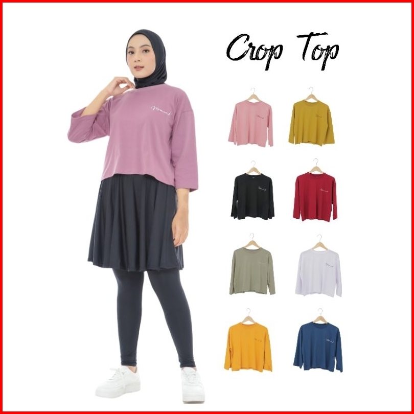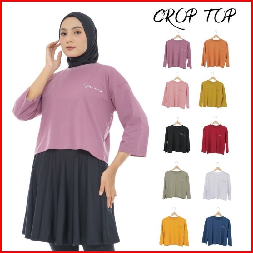 Atasan Baju Kaos Perempuan Blouse Crop Top Wanita Basic Oversize Lengan 7 8 Polos